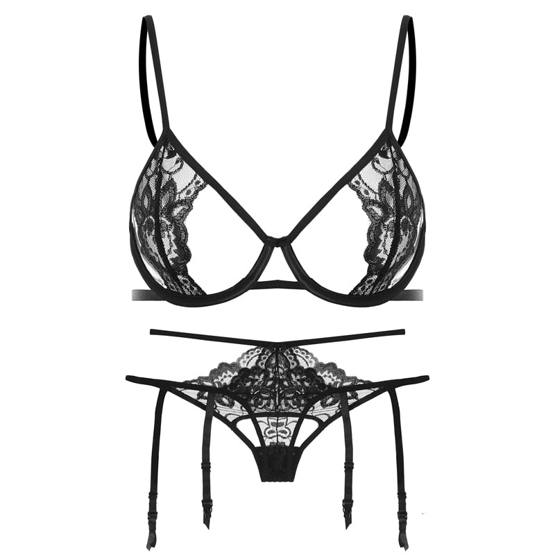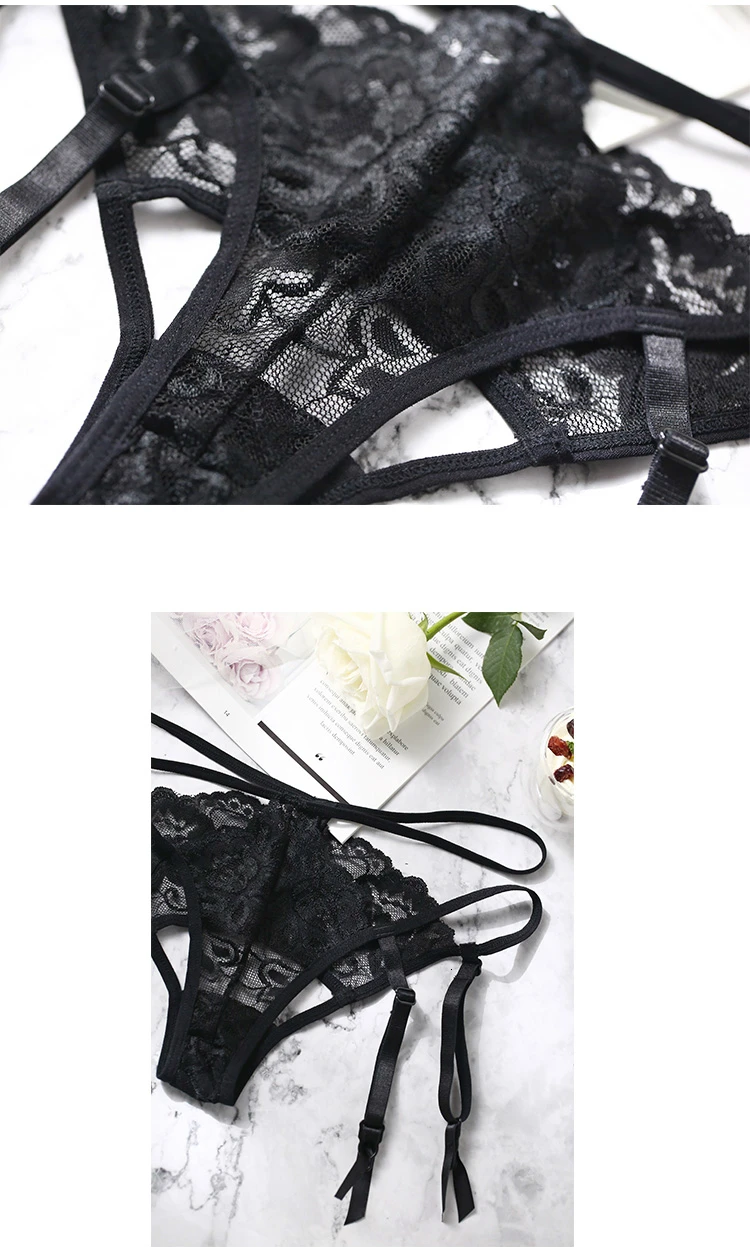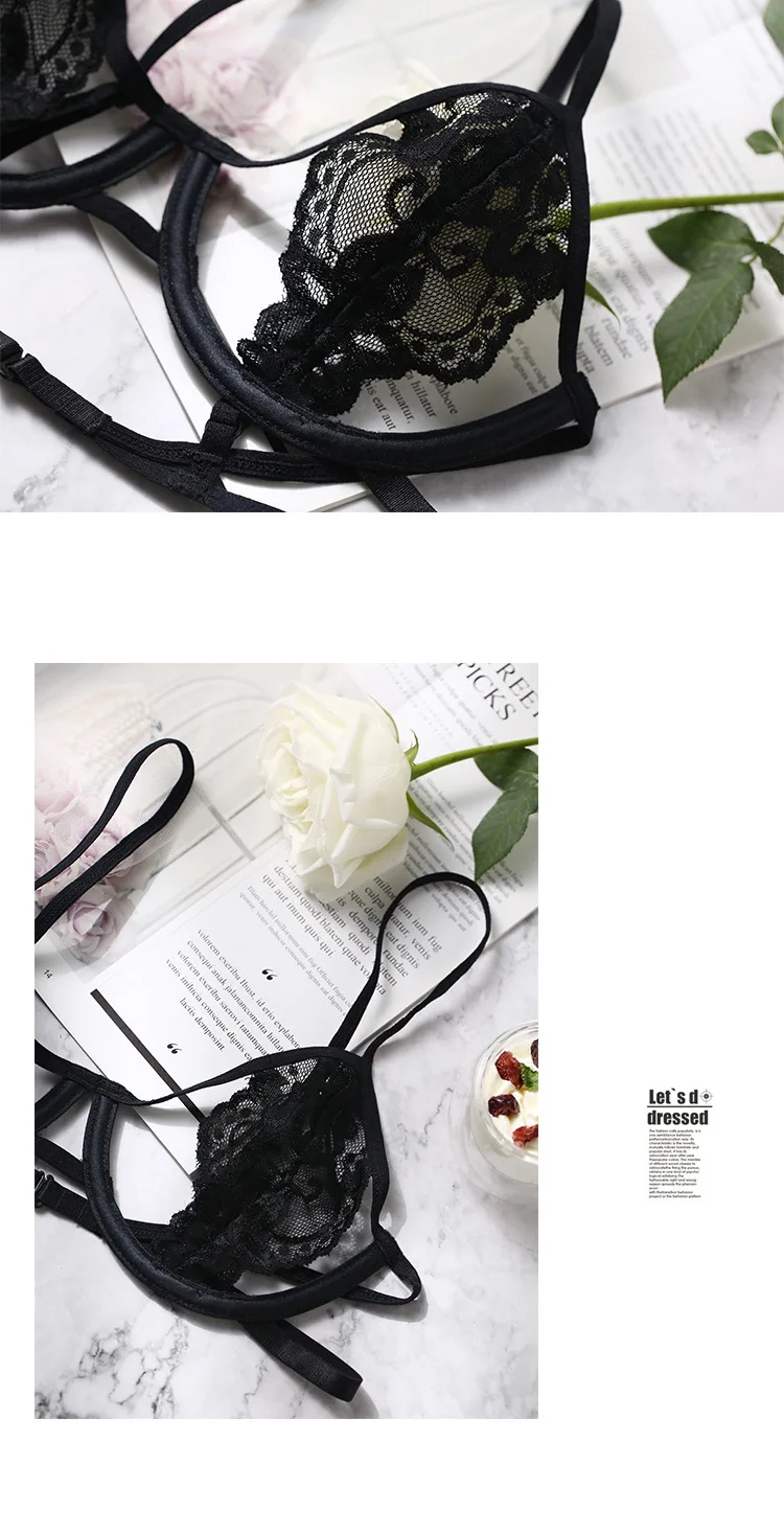 Sexy Lace See Through Bra Thong Set Ultra Thin Underwire Bra and Panty Sets with Suspenders Women Lingerie Intimates