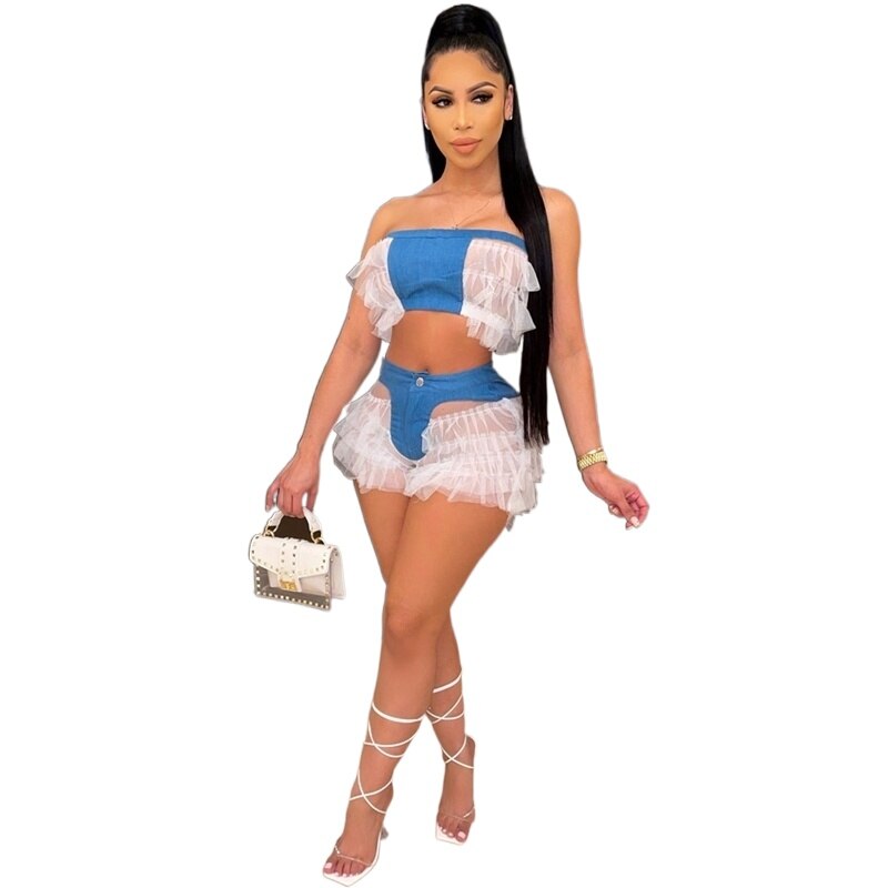 Sexy Ruffles Shorts and Crop Top Women Summer 2 Piece Sets Fashion Club Vacation Outfits Wholesale Items