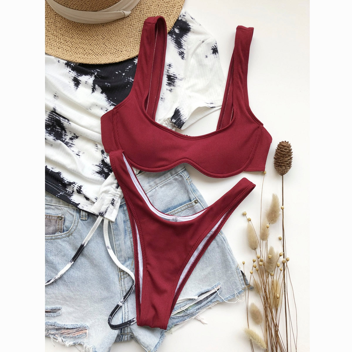 Sexy Swimsuit Female Push Up Bikini Solid Women Swimwear High Waisted Bikini Set Biquini Bather Bathing Suit Swimming Suits