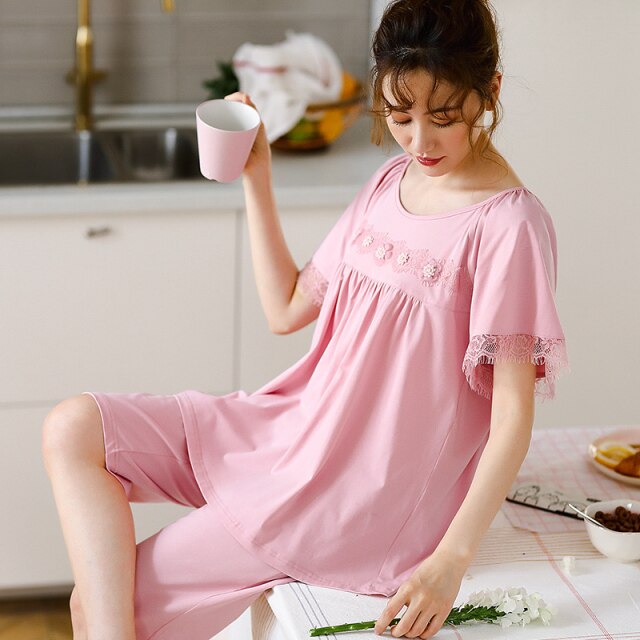 Summer Modal Short Sleeve Soild Loose Sleepwear Girl Pijamas Mujer Leisure Nightgown Women Hot Sale Women Pajamas Sets XXXL