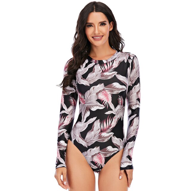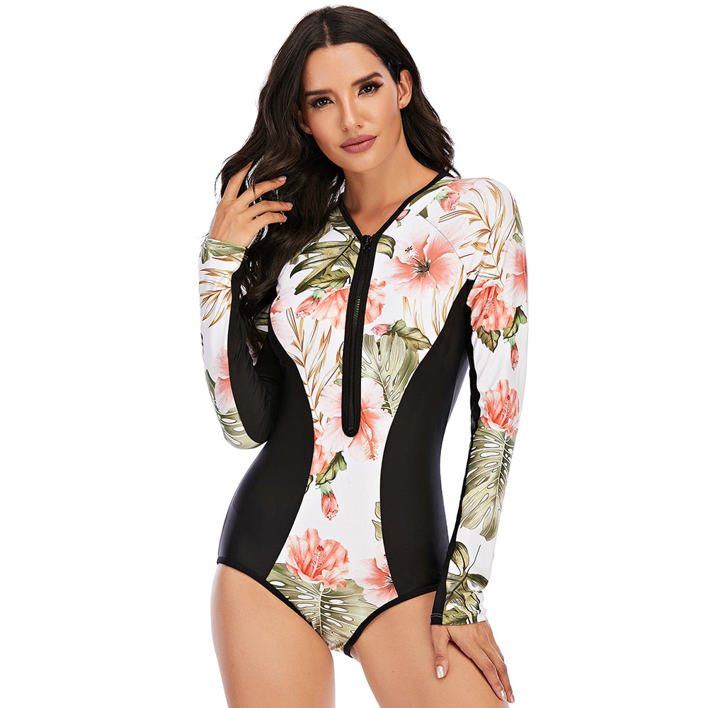 Surfing Swimsuits Zipper One Piece Swimsuit Female Long Sleeve Swimwear Women Printed Bathing Suits Beach Wear Swimming Suit XXL