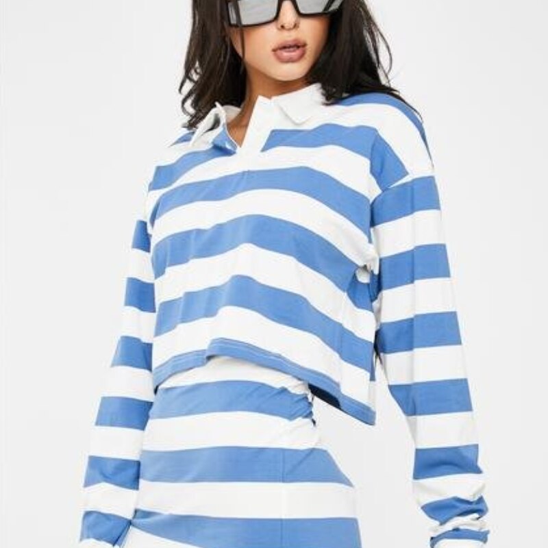 Two Piece Suit Patchwork Turn Down Collar Women Pullover Women Jumper Stripe Tops Long Sleeve Sheath Dress Knitted 2 Piece Sets