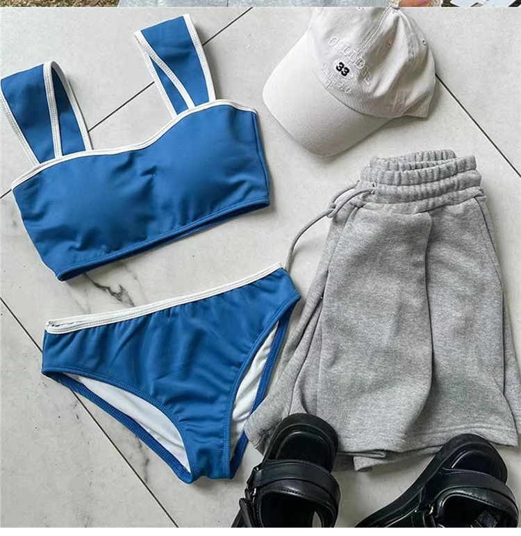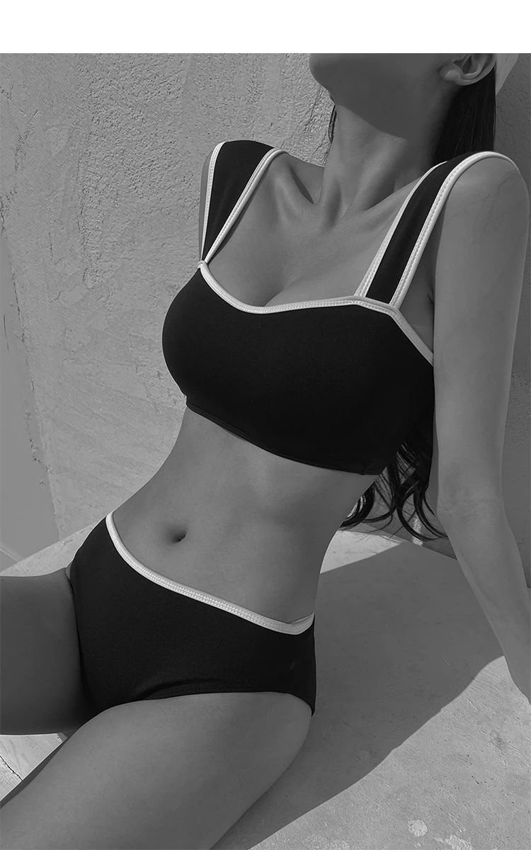 Women's Bikini Set Low Waist Padded Biquini Solid Swimwear Swimsuit Brazilian Bikinis Beach Suit 2023 Koren Bathing Suits