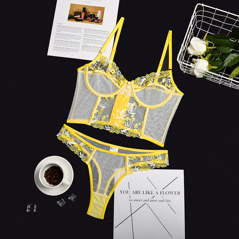 Women Sexy Lingerie See-through Flower Embroidery Underwear Erotic Temptation Sensual Lingerie Lace Bra and Brief Sets