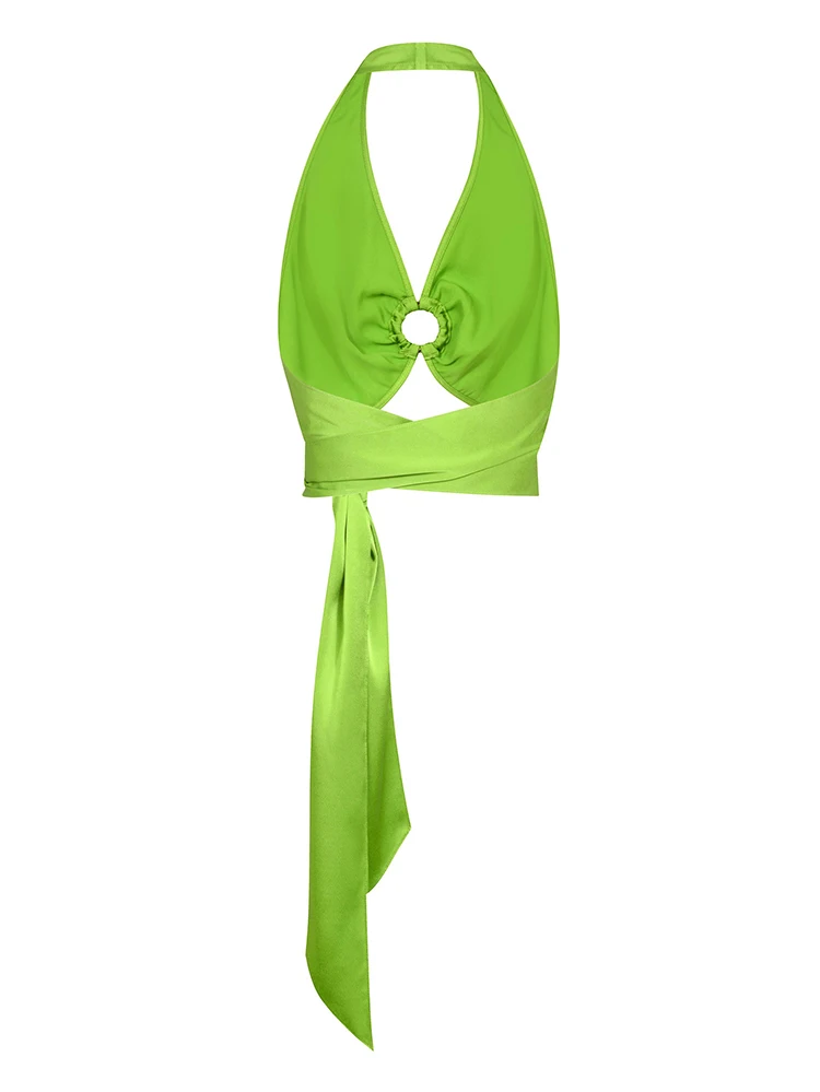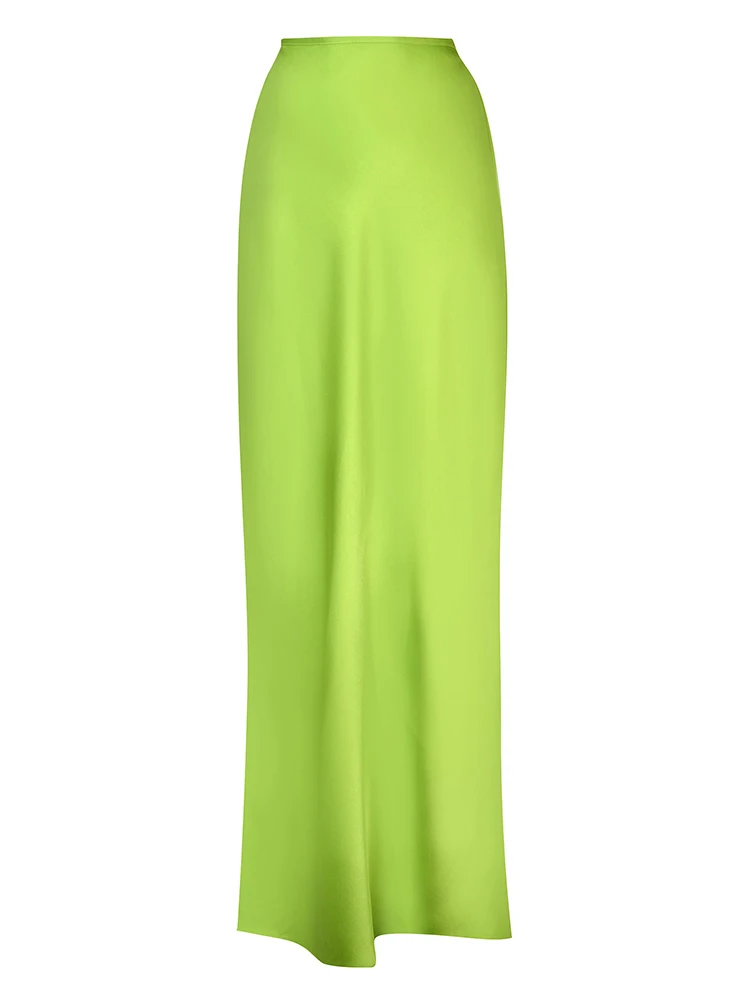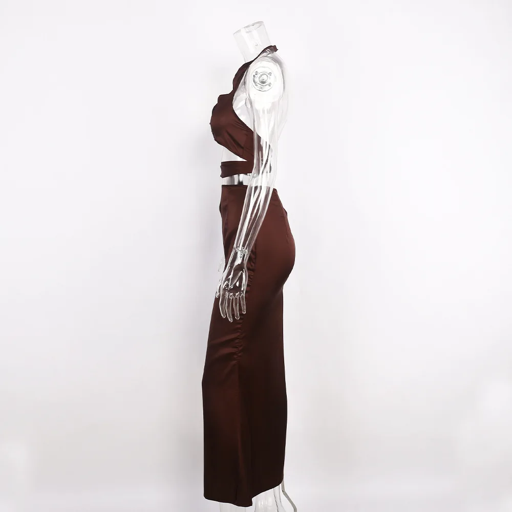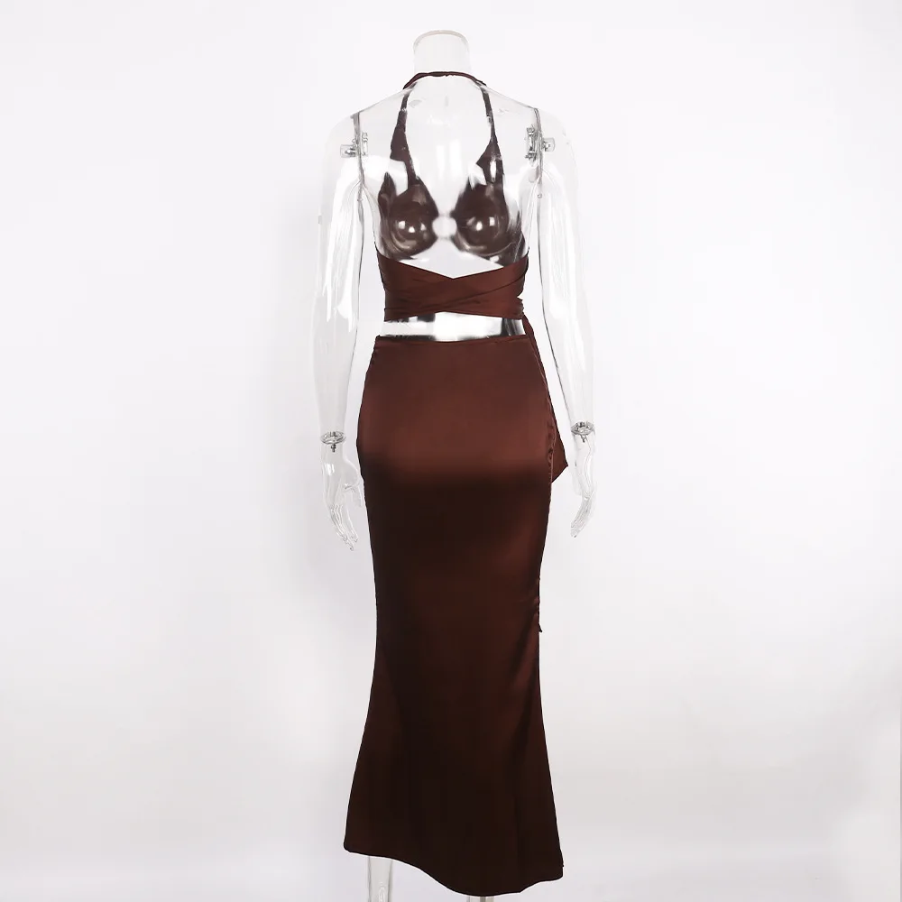 Women's Skirt 2 Piece Set 2022 Summer Sexy Halter Hollow Tops+classic Slip Maxi Skirt Sets Green Satin Partywear Beach Outfits