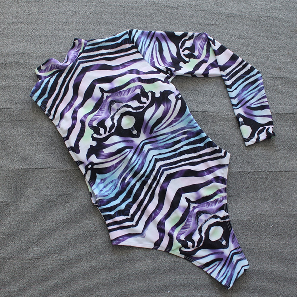 Women One Piece Swimsuit Long Sleeves Swimwear 2021 New Bodysuit Monokini Print Bathing Suits Summer Beach Wear Swimming Suit XL