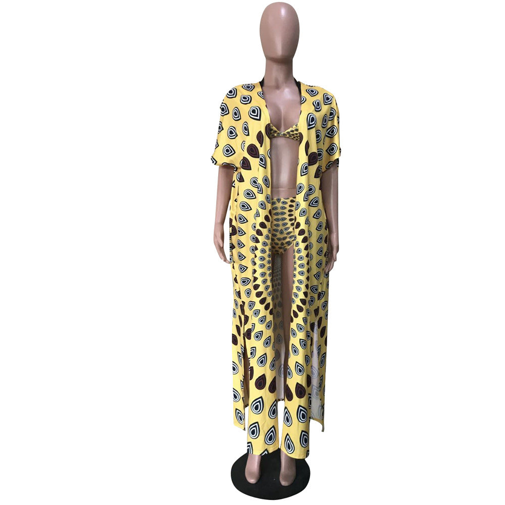 Women Outfits Sexy Hollow Printing 3-Piece Suit Swimsuit Bikini Lingerie Suit Swimwear Bathing Suits