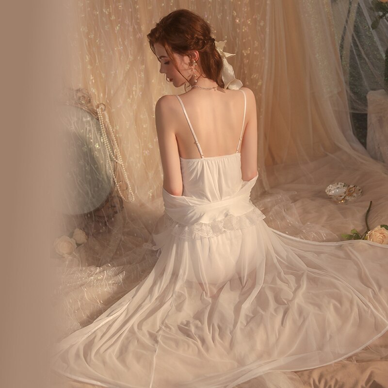 Women Silk Backless Pamajas Sets Night Dress Lace Camisolas Long Robe Sleepwear Bathrobe Sexy Lingerie Summer Nightwear 2022