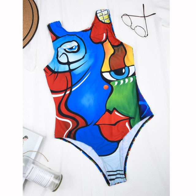 Women Swimwear Pop Art One Piece Swimsuit Female Monokini Swimming Suits Bathing Suits Print Swimsuits For Women Swimwear Beach