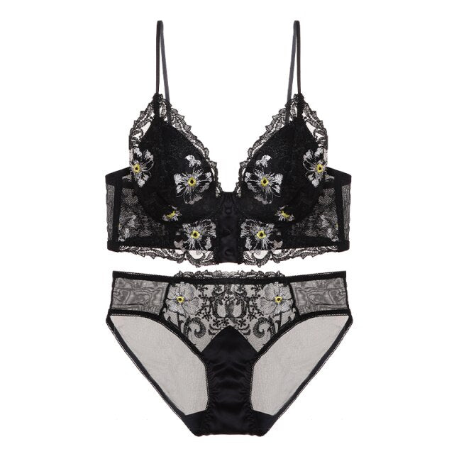 women underwear lace lingerie set sexy hot embroidery bralette push up bra and panty sets comfortable exotic intimates Lingerie