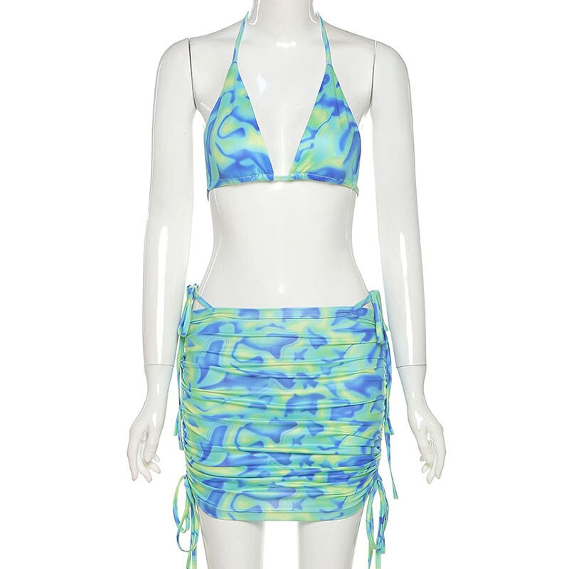 Women's Swimwear 2021 Summer Beach Dress Sexy Woman Clothes Suits With Skirt Beach Cover up Beach Tunic Summer Light Dresses