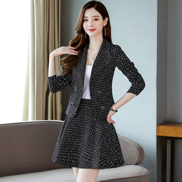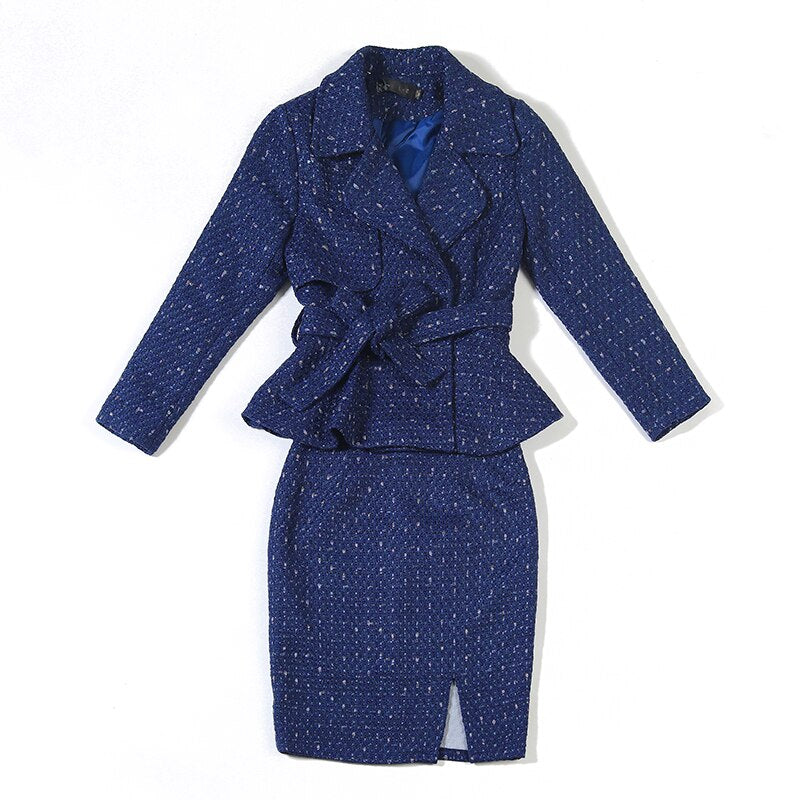 Women's Woolen Suit Winter New Style Suit Jacket + Skirt Suit Two-piece Suit Blue White Female Woolen Sets