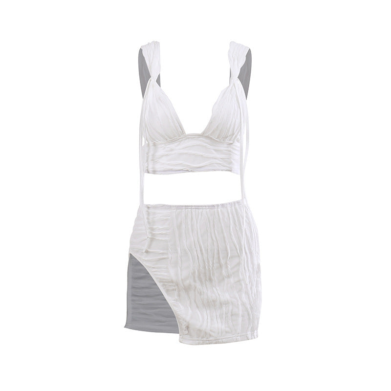 Y2K 2022 Fashion Summer White Stripe Sexy Mini Dress Two-Piece Suit Vest And Split Skirts Sets For Women‘s Clothes Party Cotton
