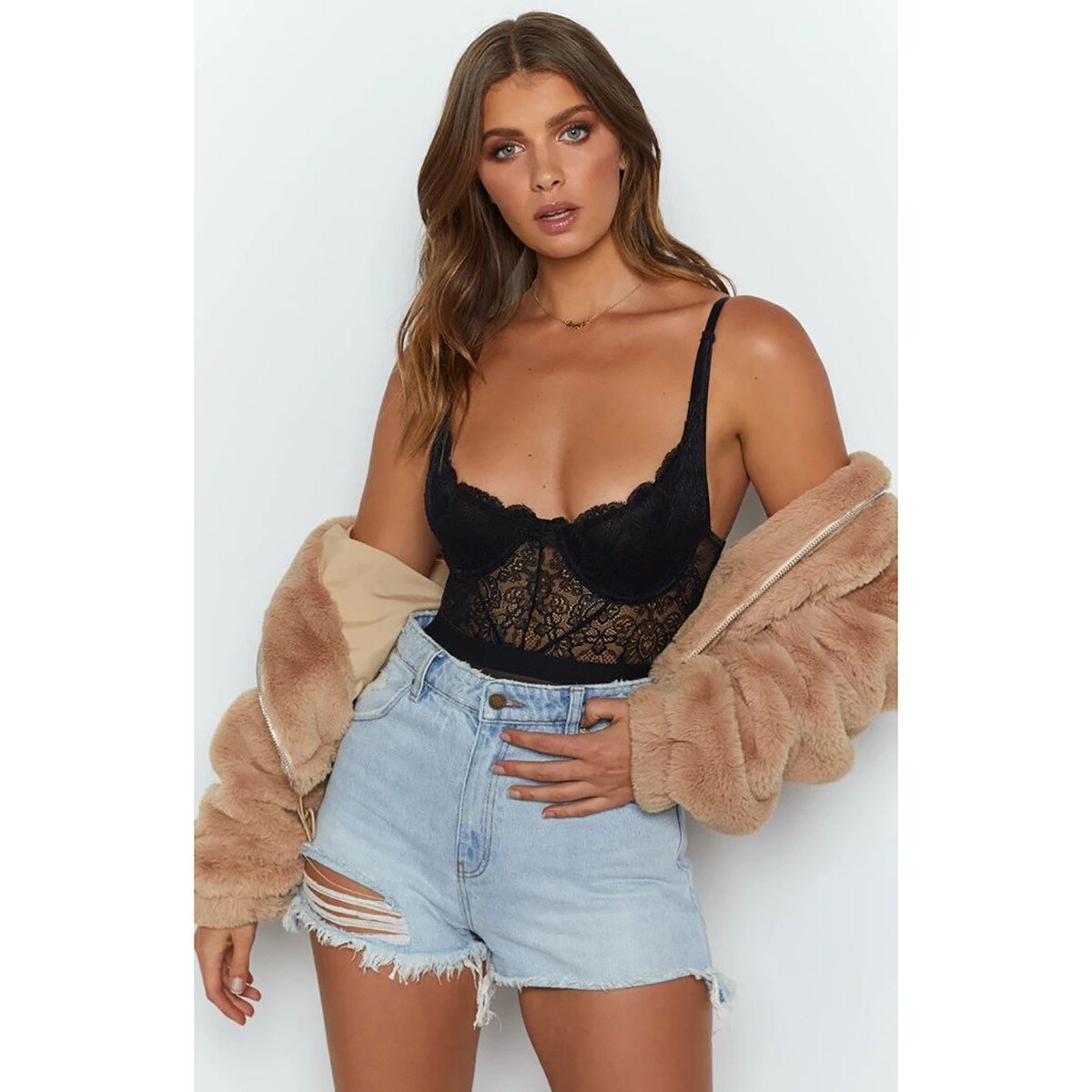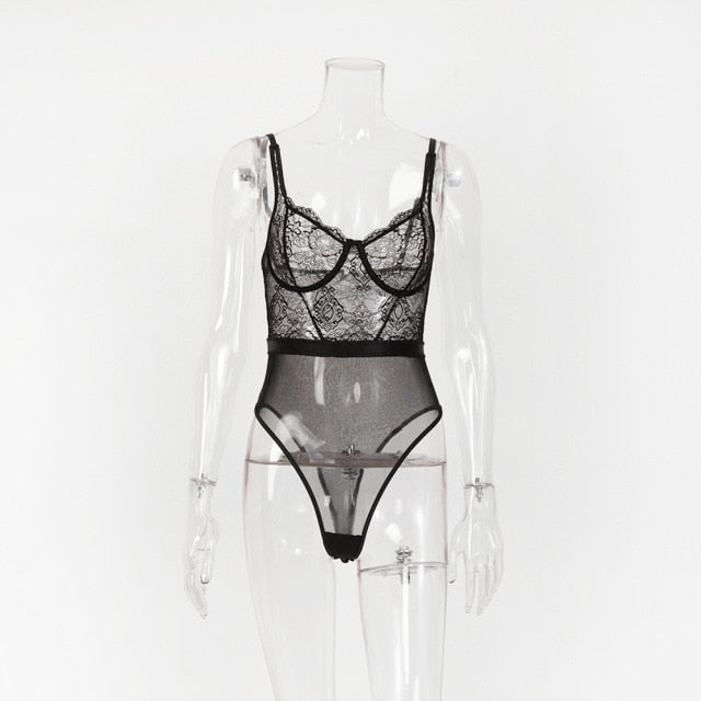 Yimunancy Mesh Sheer Lace Bodysuit V Neck Sexy Bodysuit Women 2020 Teddies Catsuits Body Mujer Party Clubwear