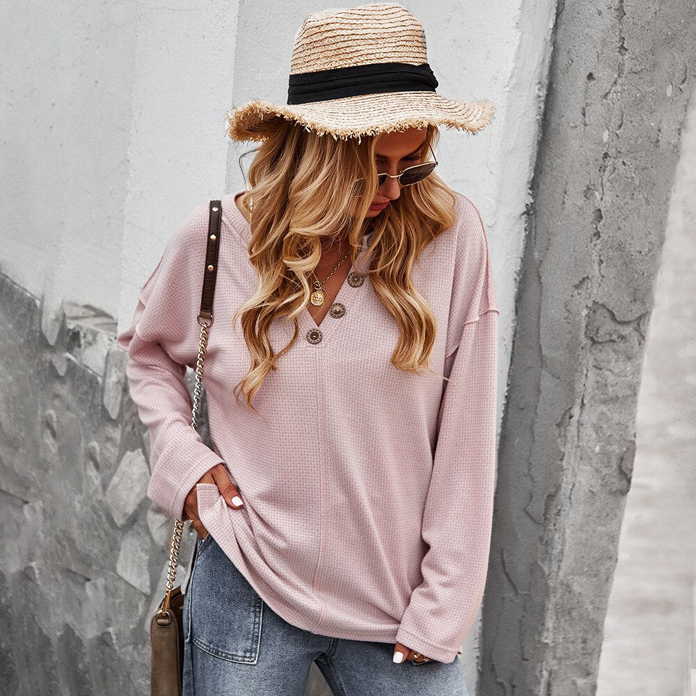 2021 New Autumn Women Solid Thin Sweaters Pullovers Casual Knitted Loose Sweater Women Lady Button V-Neck Pull Jumpers Shirt