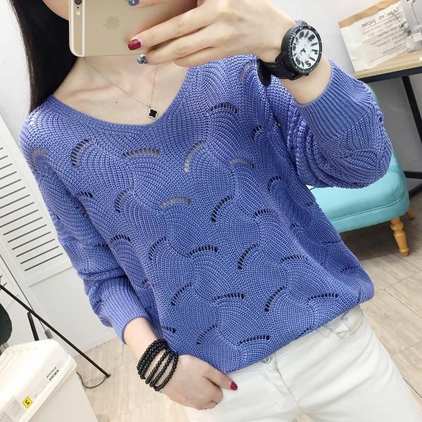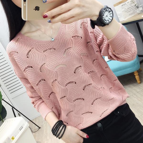 Woman Sweaters Pullover Women's Pullover Loose Top V-neck Sweater, Hollow-out Sweater for Spring 2021 Femme Chandails