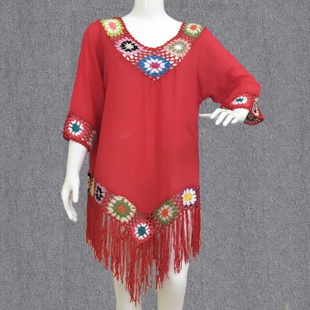 2021 New Women’s Crochet Chiffon Tassel Swimsuit For The Beach Bikini Cover Ups Swimwear