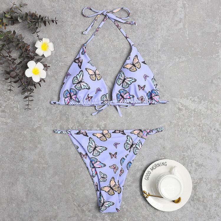 2021 Swimsuit Butterfly Printing Wearing Rope Ladies Split Bikini Swimsuit Women 2 Pieces