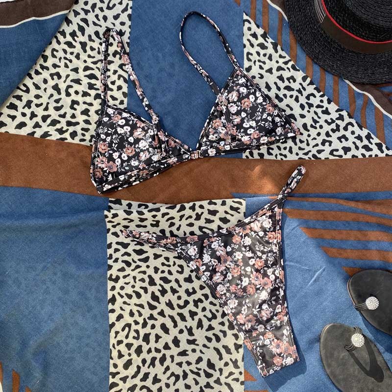Bikini Floral Swimwear Women Biquini Print Bikini Set Bathing Suit Women Swimsuit Low Waist Black Bikinis 2 piece set women