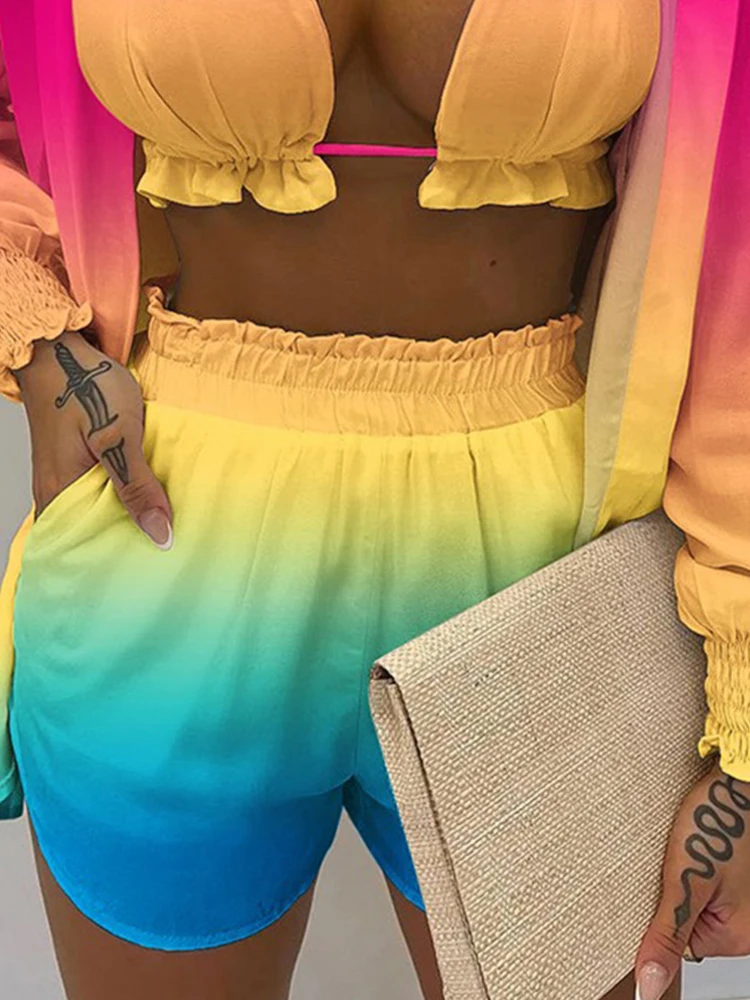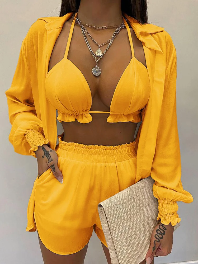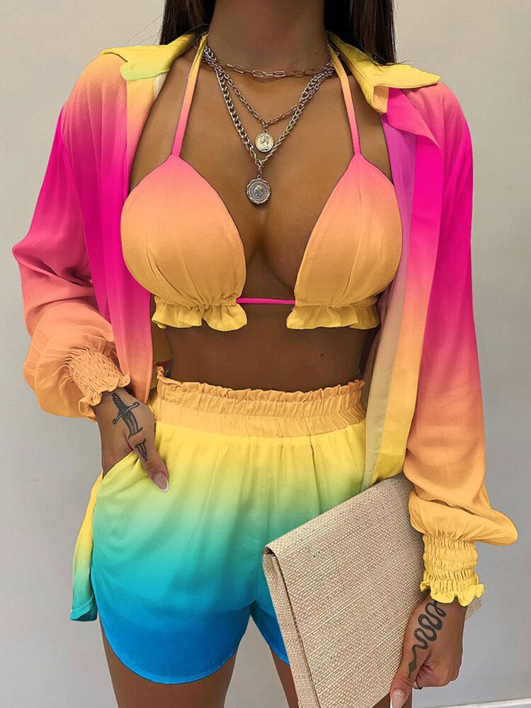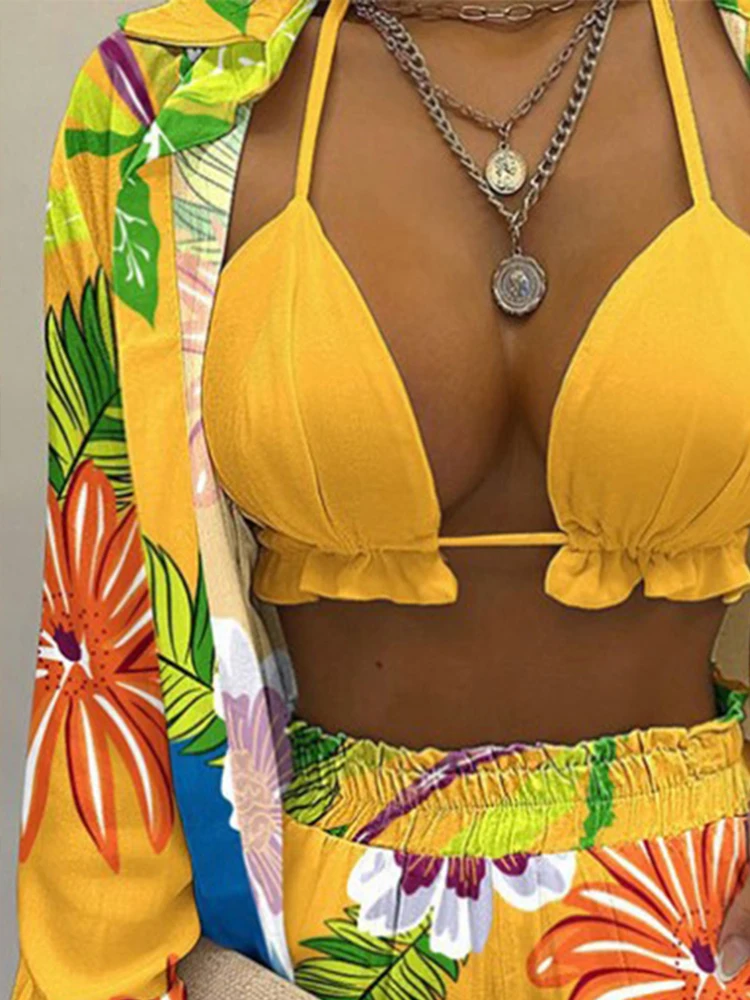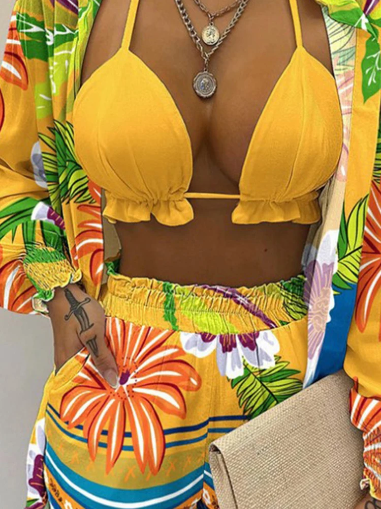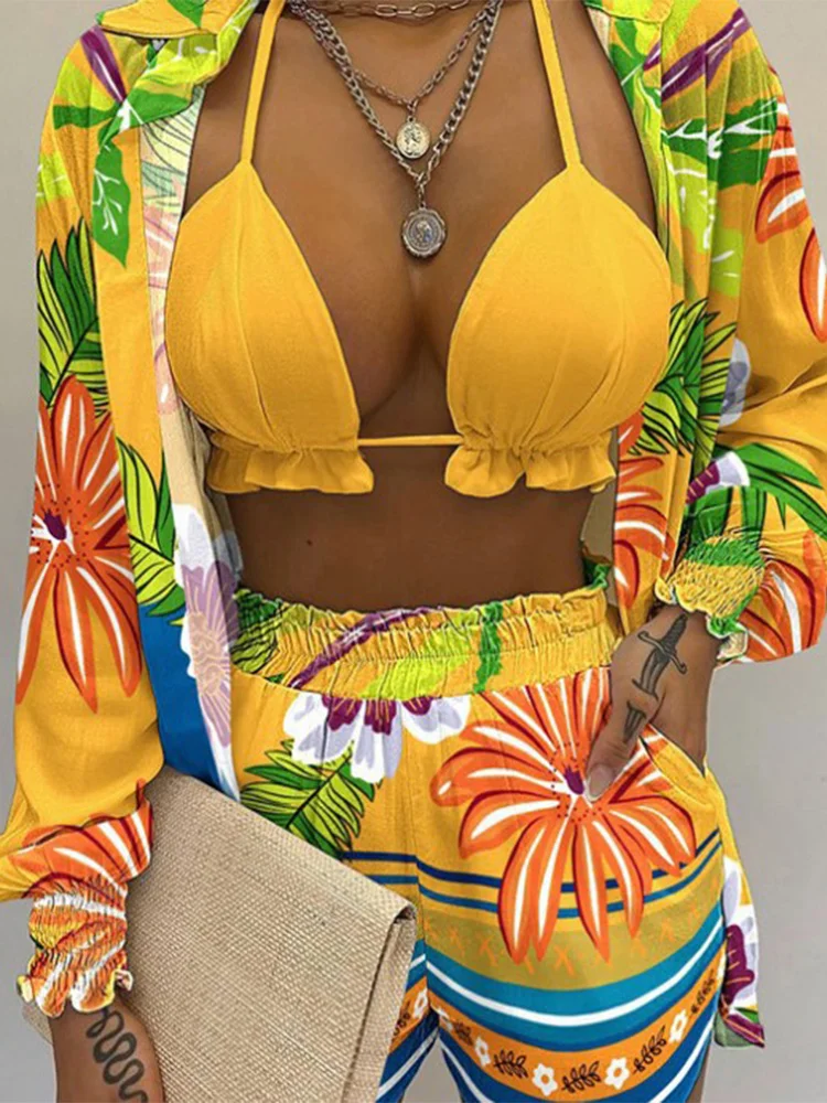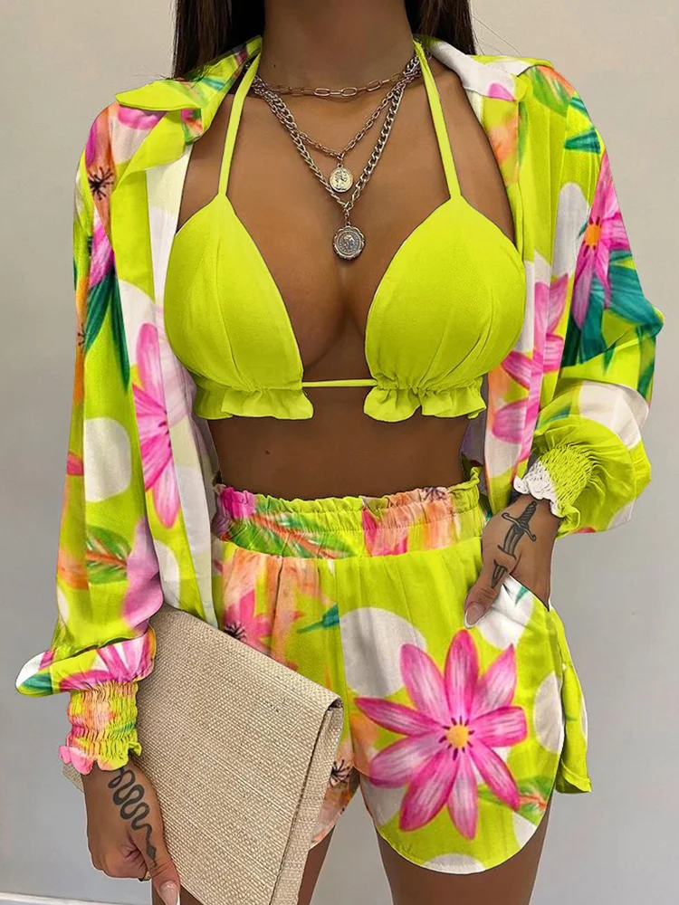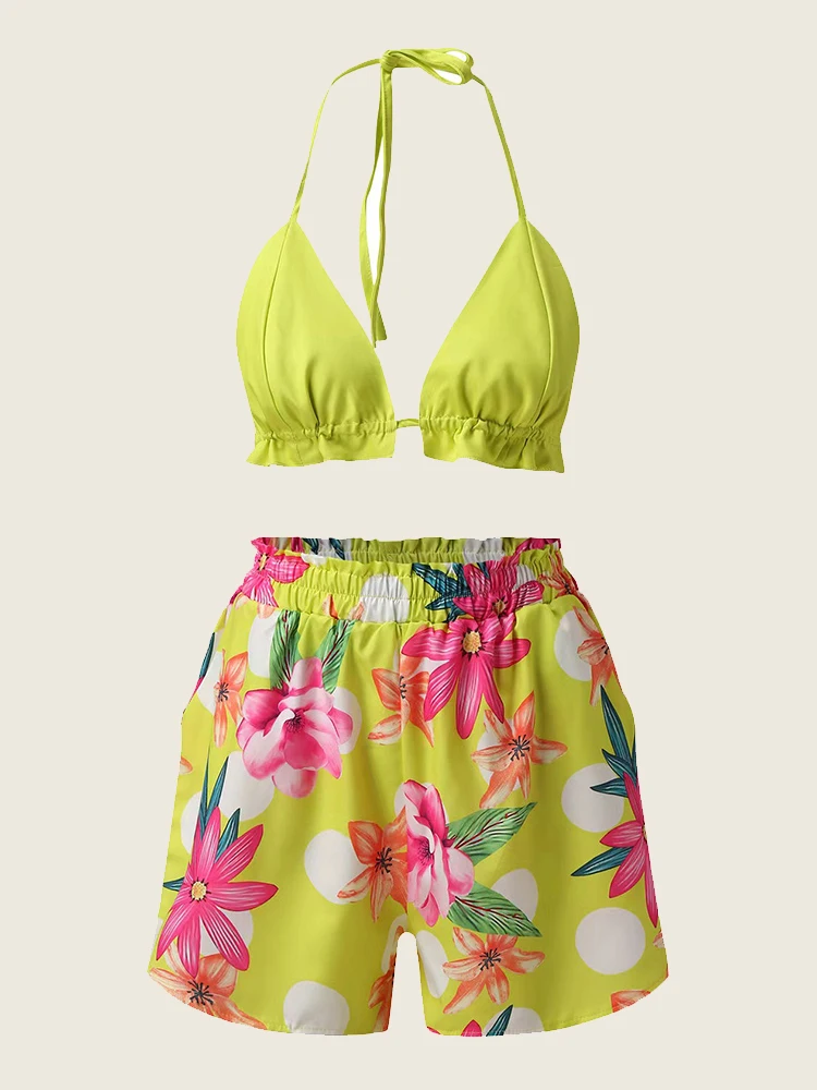 High Waist Bikini Set Print Women's Swimsuit Three Pieces Swimwear Sexy Beachwear 2023 New Bathing Suit Shorts Cover Up Summer