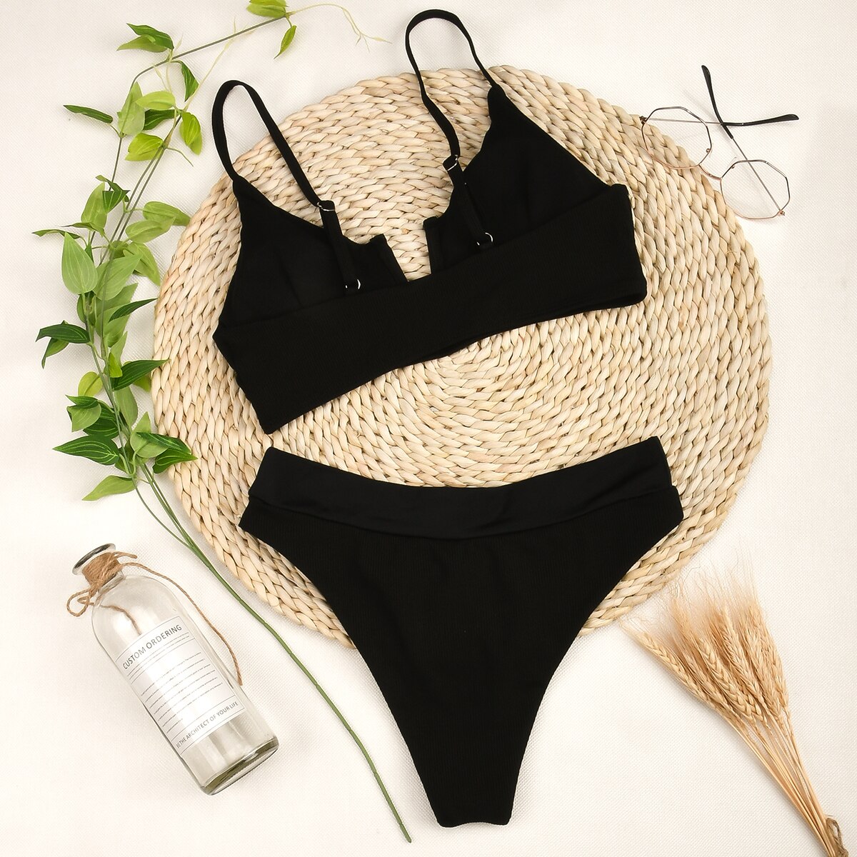 High Waist Bikinis 2021 Sexy Women Swimsuit Solid Swimwear Female V-Neck Brazilian Thong Bather Bikini Set Biquini Bathing Suit