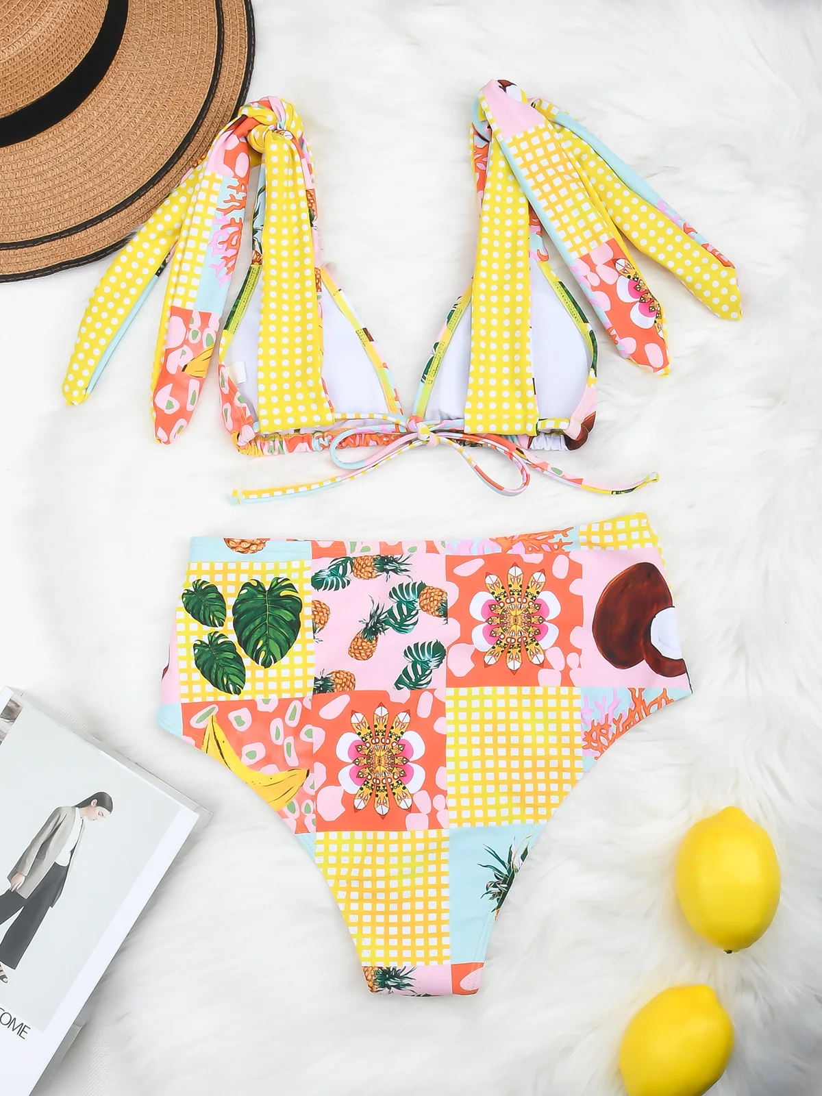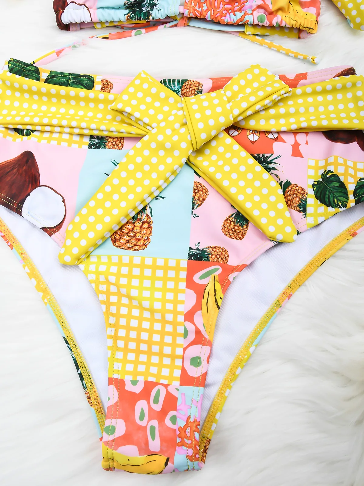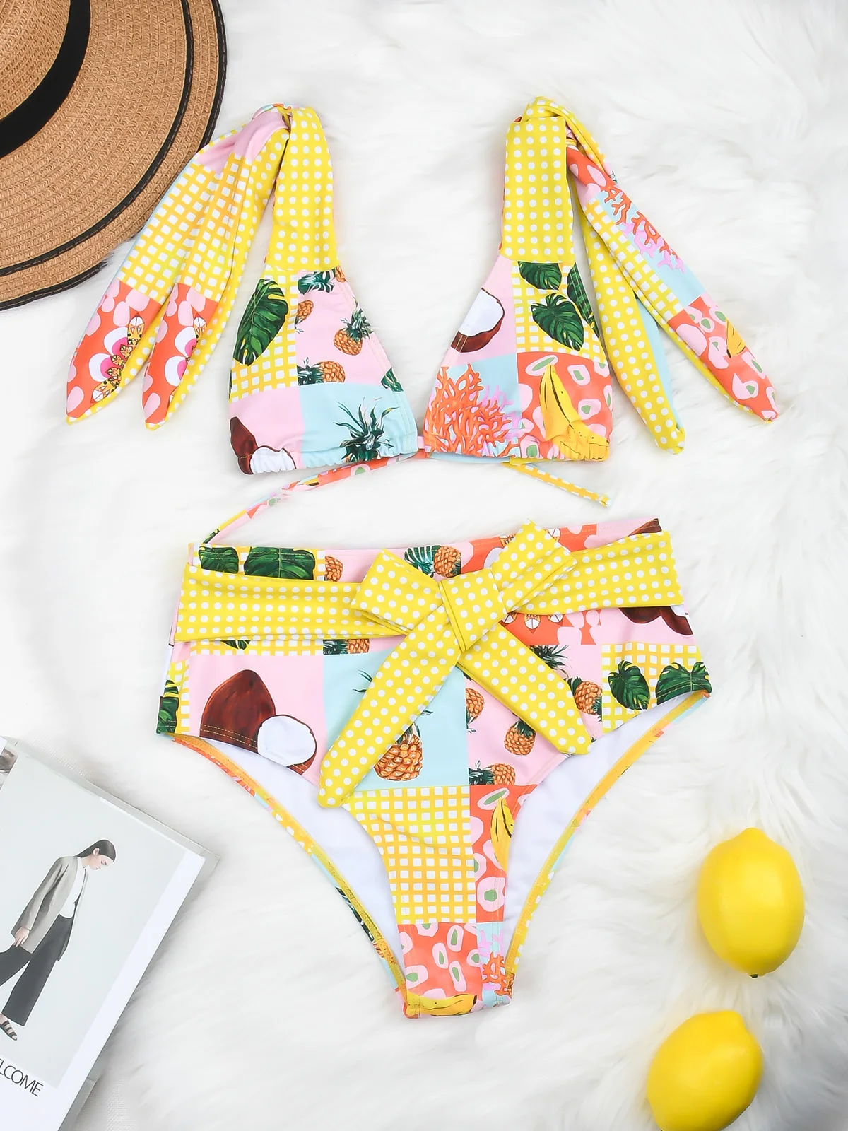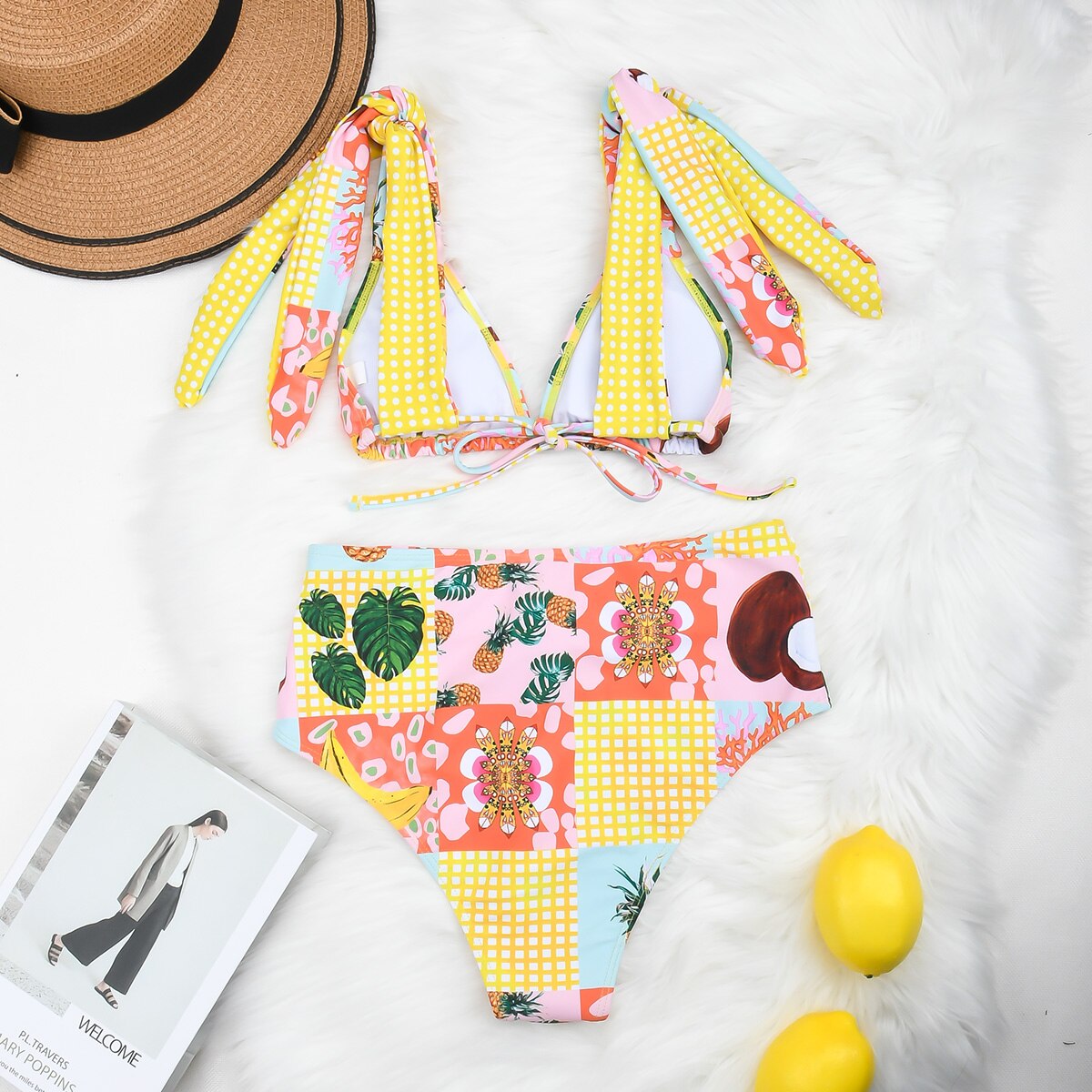 High Waist Bikinis 2021 Sexy Women Swimsuit Swimwear Female Brazilian Bather Floral Bow Bikini Set Biquini Bathing Suit