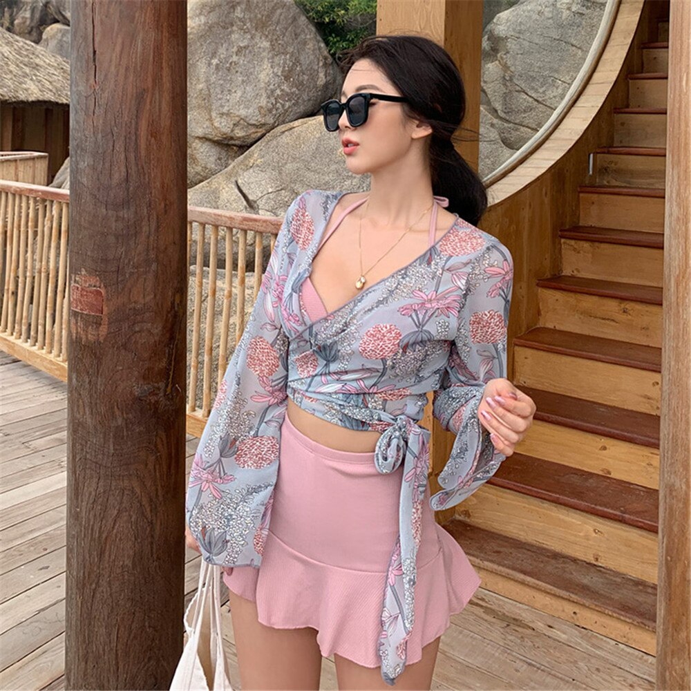 Item type: Bikinis set Gender: Women Support type: Wire free Waist: High waist With pad: Yes Material: Nylon 82% + Spandex 18% Fit: fits true to size, take your normal size Pattern type: Solid Brand name: Sundfotday Model number: Bikini Style: Korean style feature: With skirt Size: M L XL Color: Pink Is-customized: Yes Packing: Polybag
