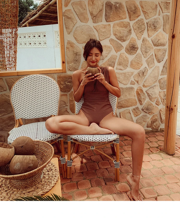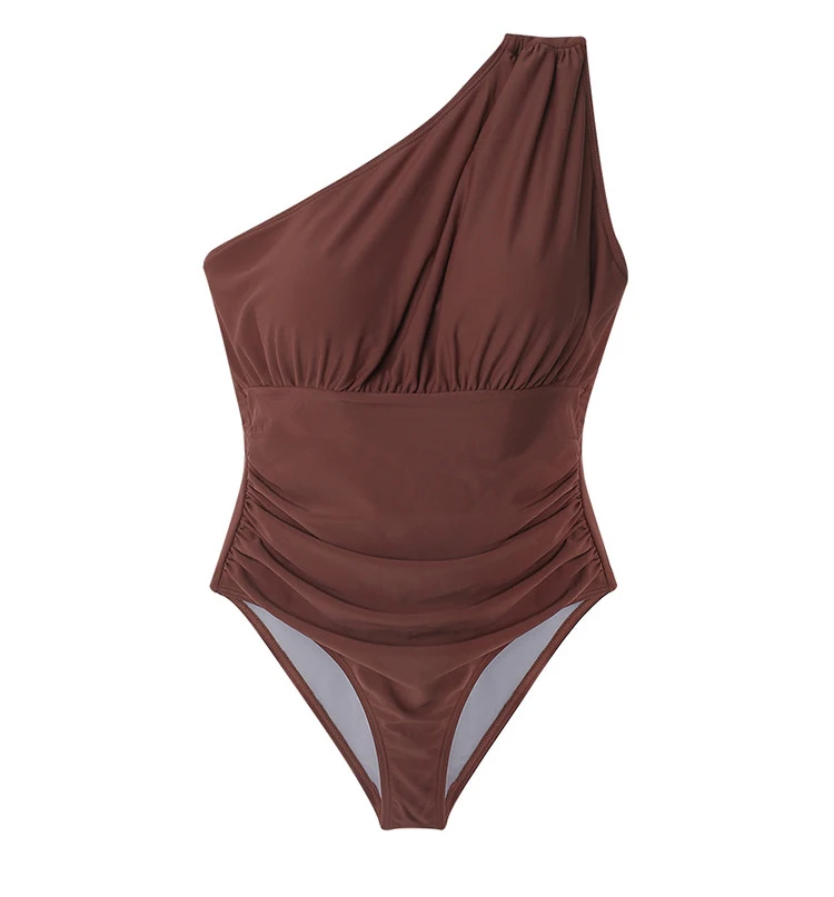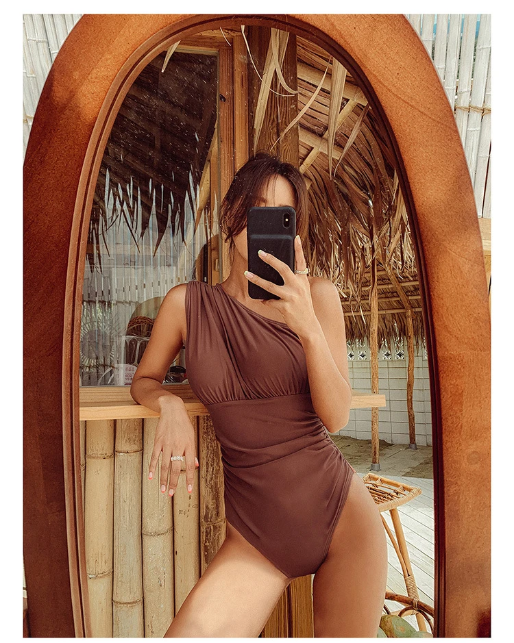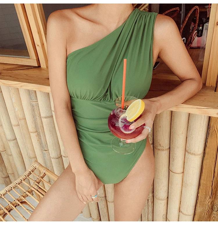 Korea Monokini Women Swimwear Solid Swimsuit Single Shoulder Bathing Suit sexy Monokini Beachwear 2021 New Maillot
