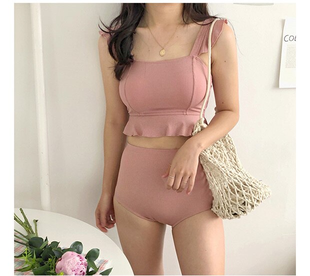 Korean Style High Waist Bikini Set Women Biquini Suit Two Pieces Swimwear Ruffle Swimsuit High Quality Beach Suit 2020