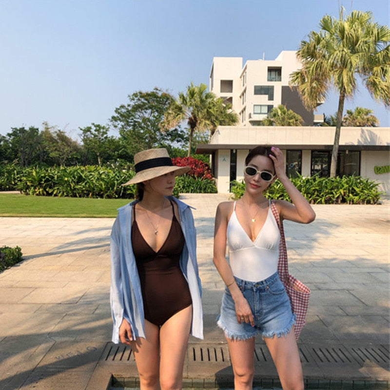 Korean Style One Piece Swimwear Solid Swimwear Push Up Swimsuit High Quality Bathing Suit sexy Monokini Beachwear 2020 New