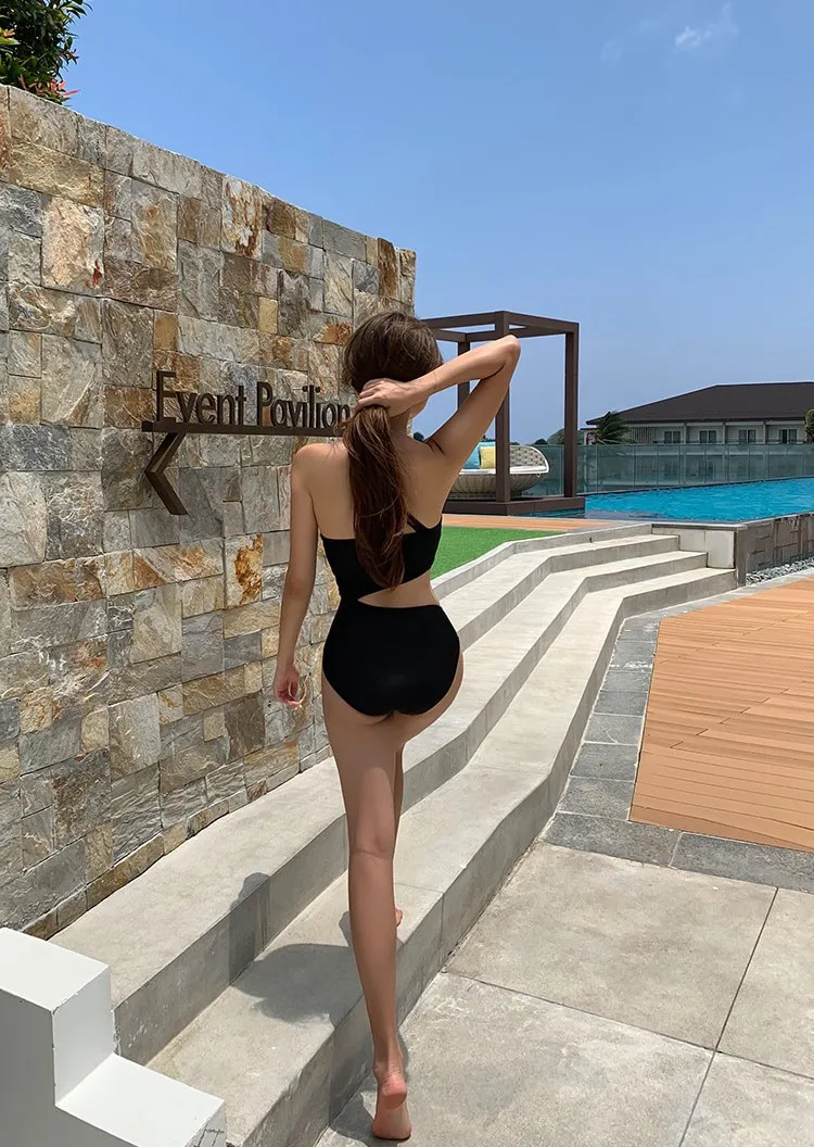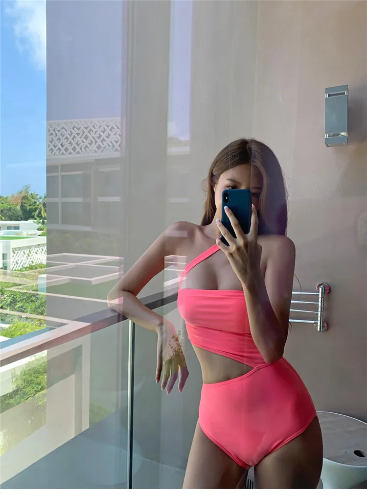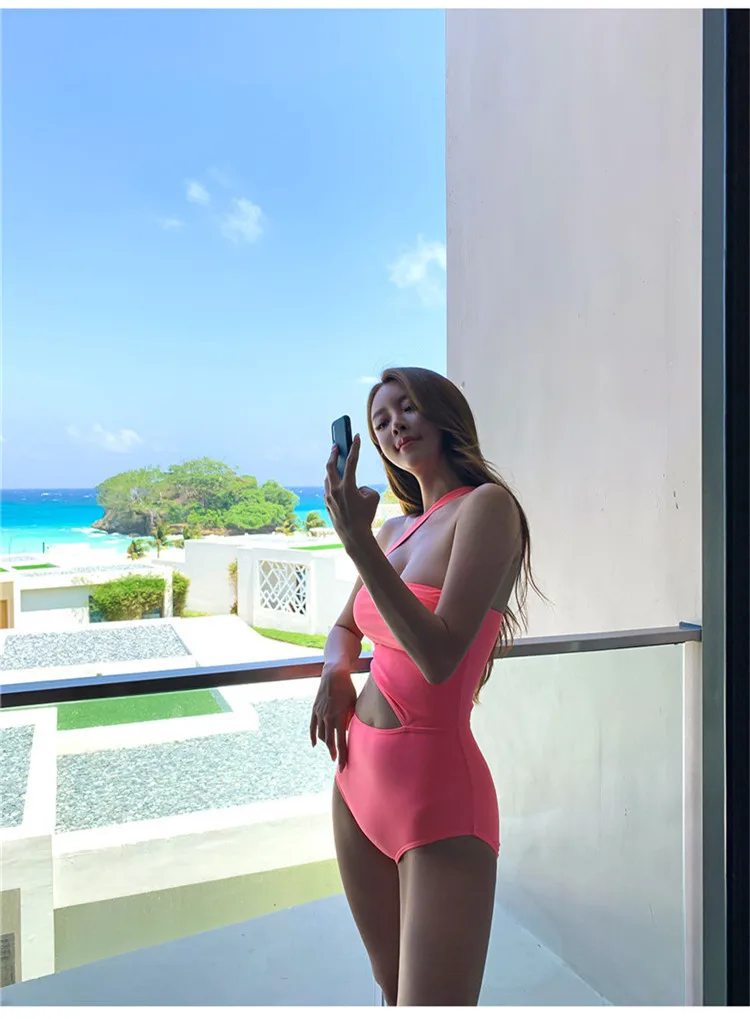Korean Style One Piece Swimwear Women Padded Swimwear Solid Cut Out Swimsuit Bathing Suit sexy Lady Monokini Beachwear 2020 New