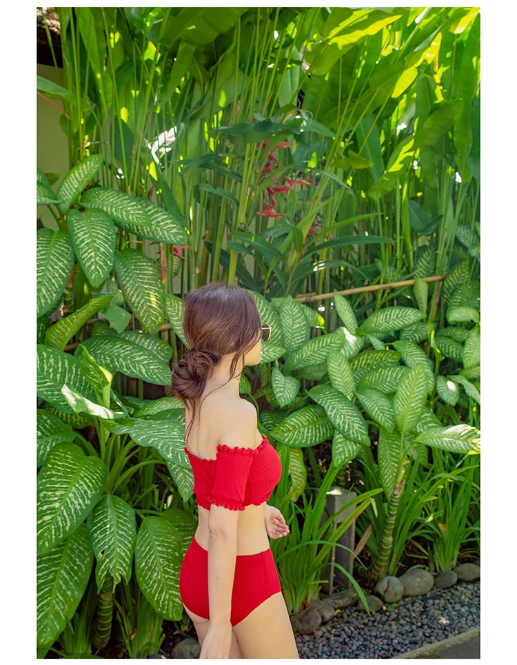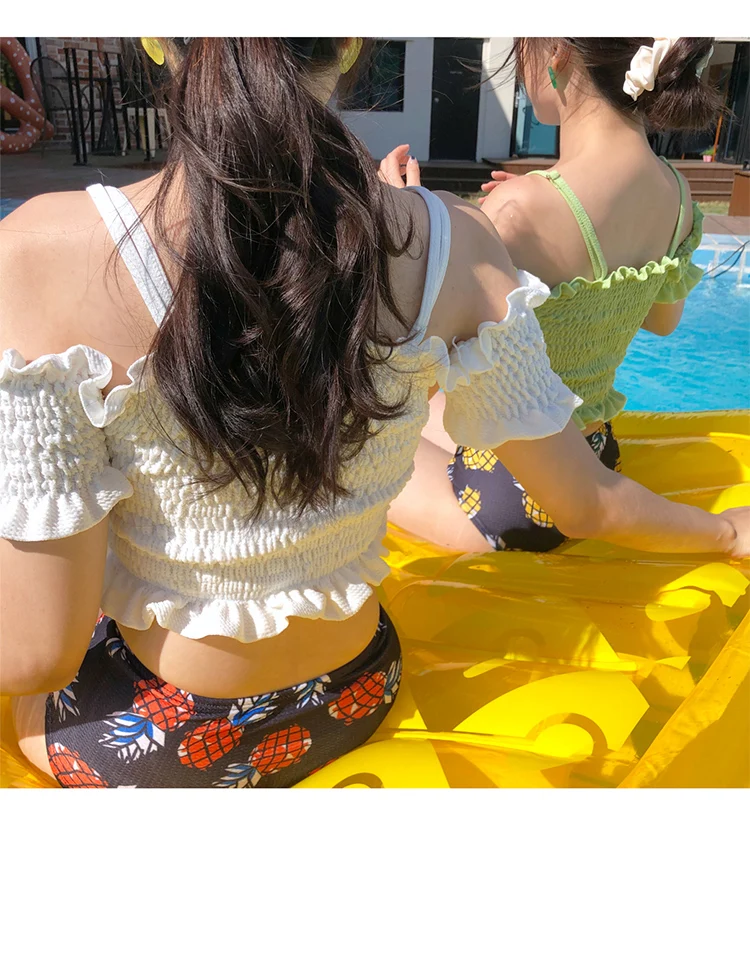 Korean Style Ruffle Bikini Women Green Swimwear Push Up Swimsuit High Waist Bathing Suit sexy Maillot De Bain Beachwear
