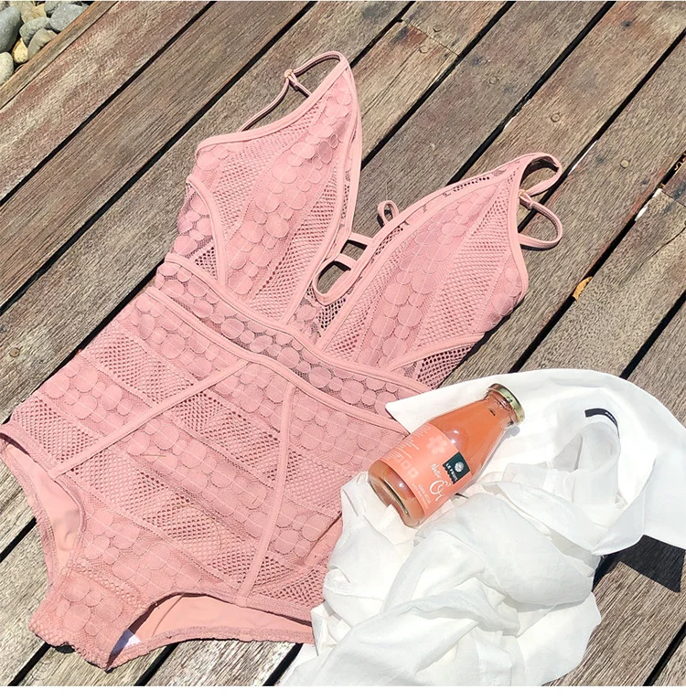 Korean Swimwear One Piece Swimwear Women Swimwear Lace Swimsuit High Quality Bathing Suit sexy Monokini beachwear Women