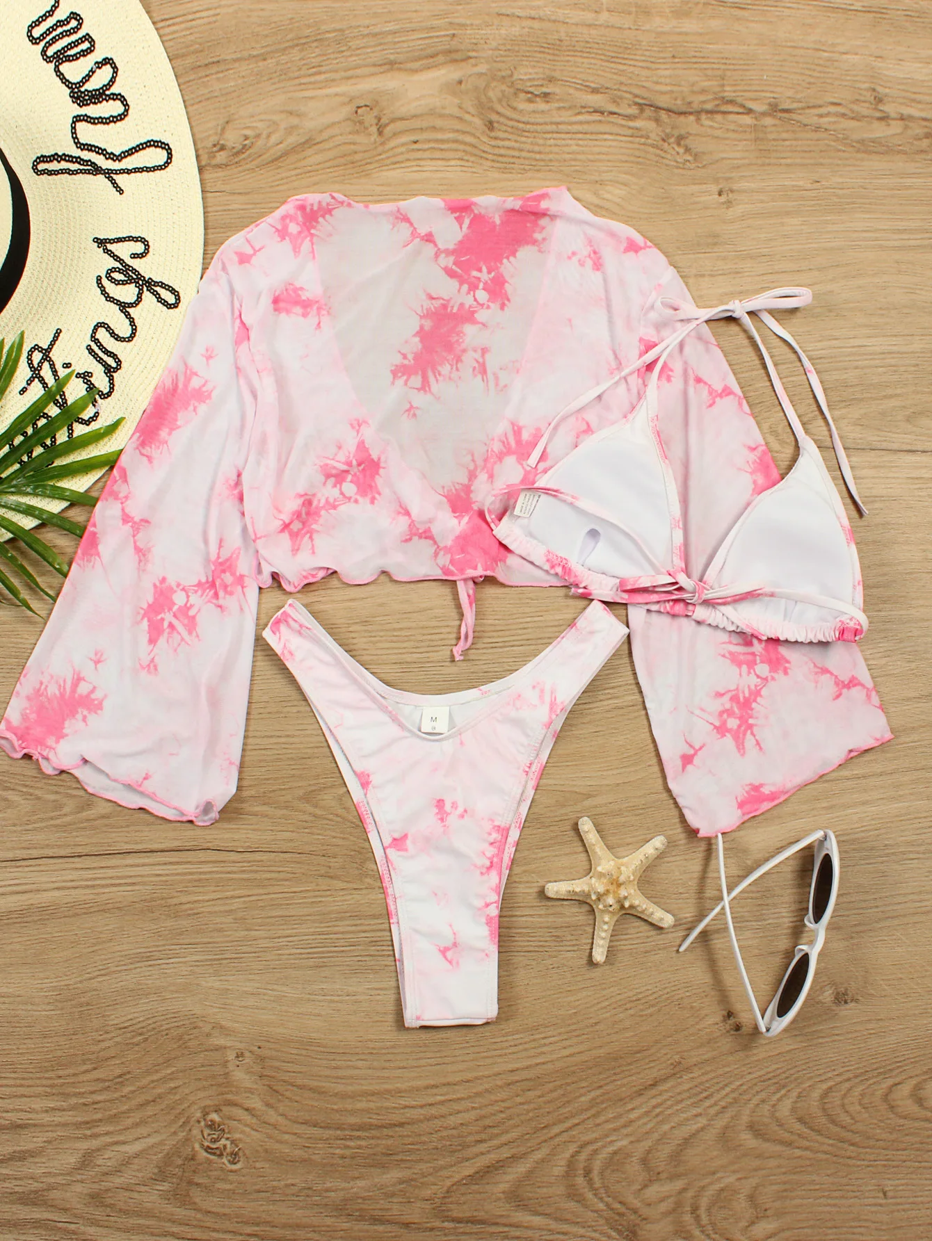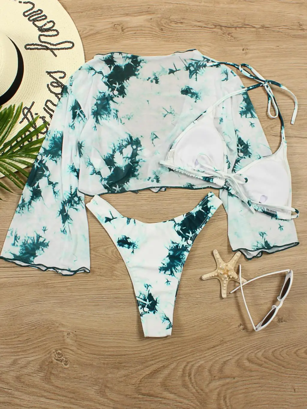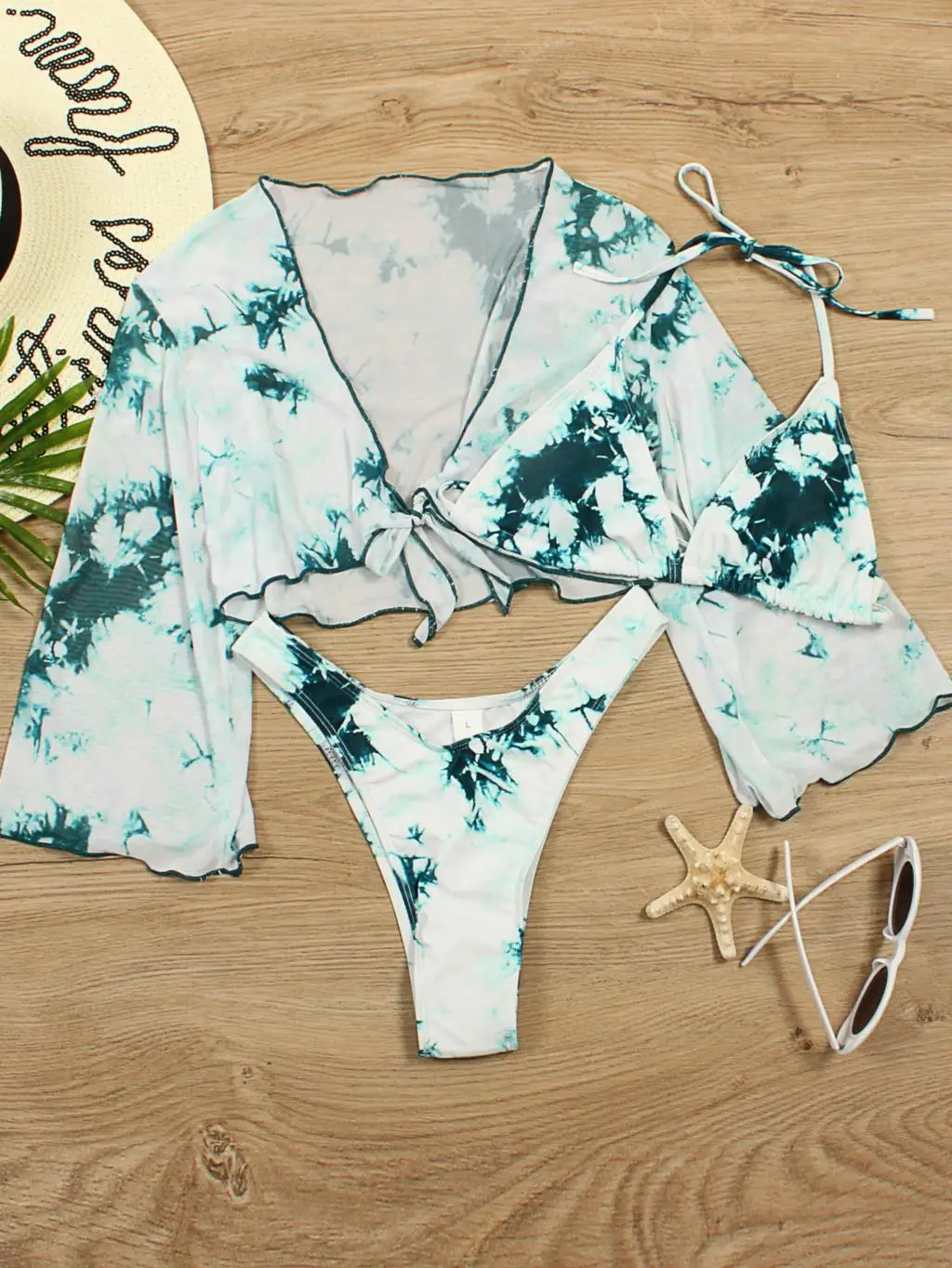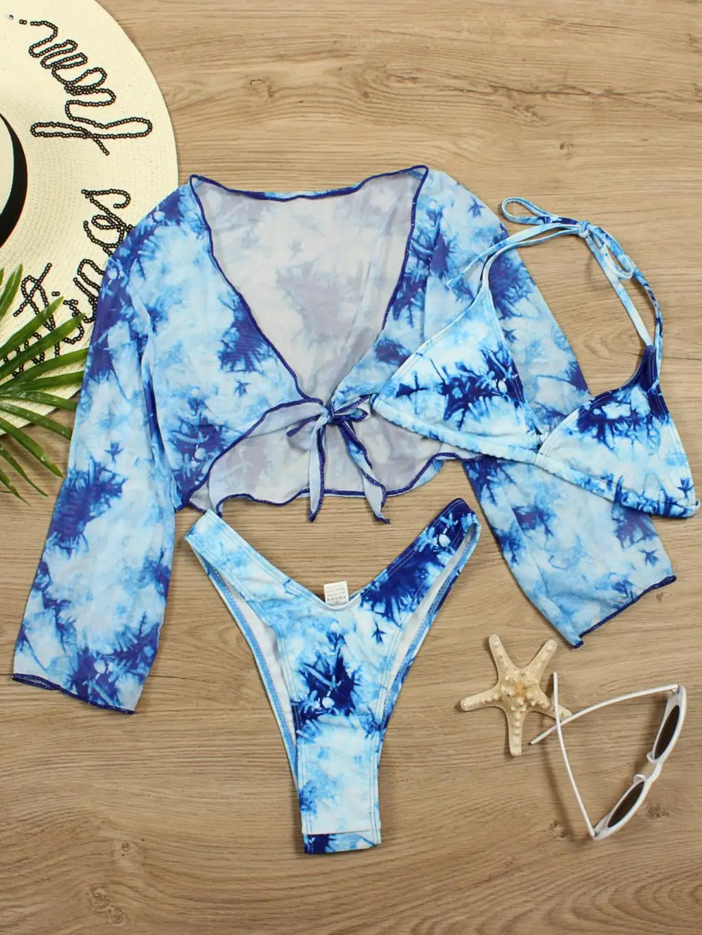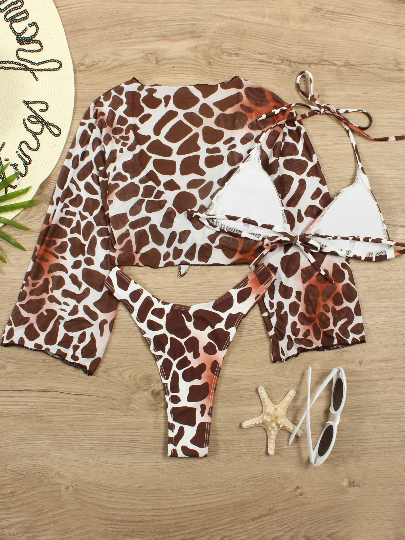 Long Sleeve Mesh Bikini Swimwear Women Three Pieces 2022 Leopard Swimsuit Female Summer Sexy Bathing Suit Brazilian Biquini