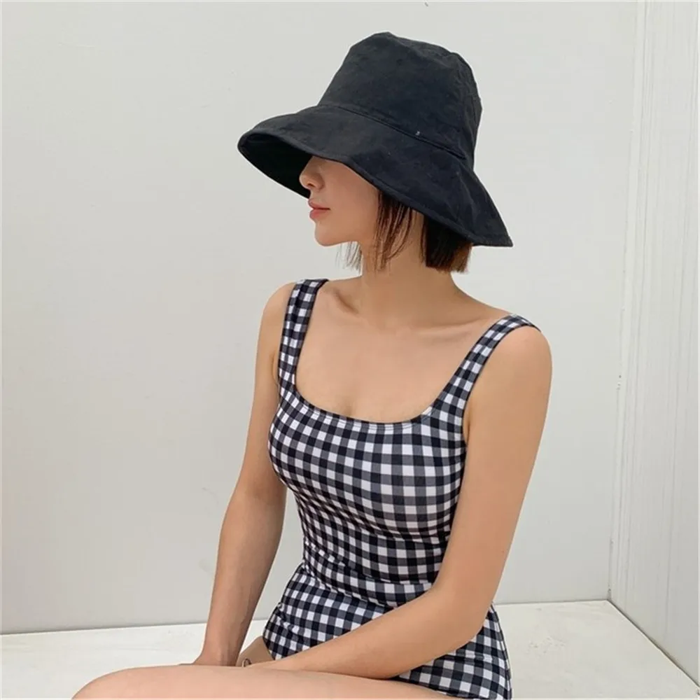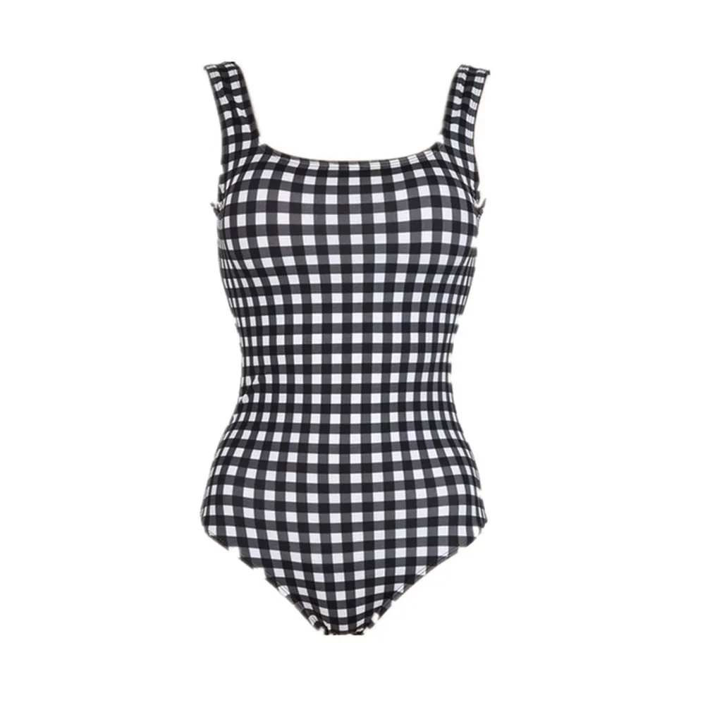 | Modest One Piece Swimsuit Women Plaid Swimwear Open Back Monokini Push Up Swim Suit Japanese Style Bathing Suit Girl Pads Beach |