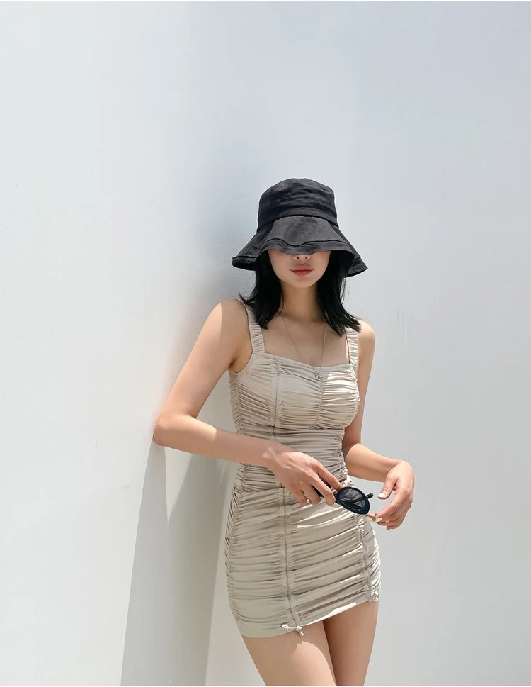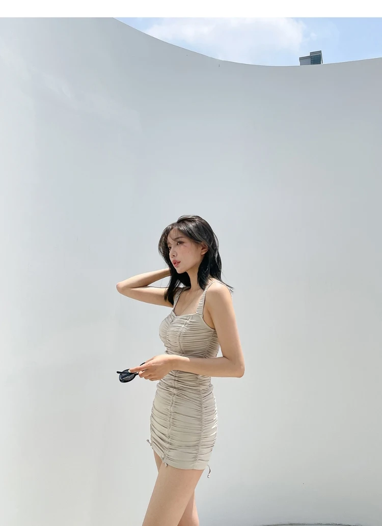 One Piece Swimsuit Women Pleated Swimwear Solid Monokini Sexy Off Shoulder Bathing Suit Female Beachwear Korea Swimwear