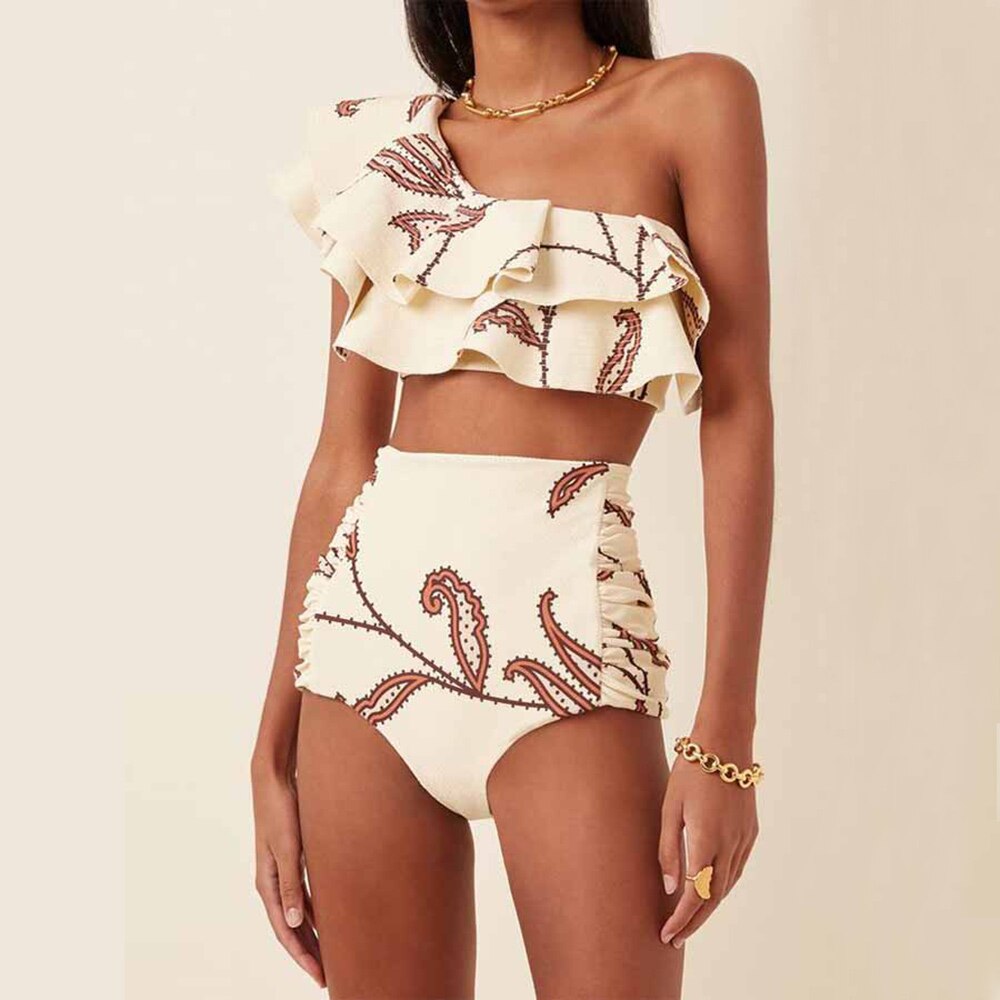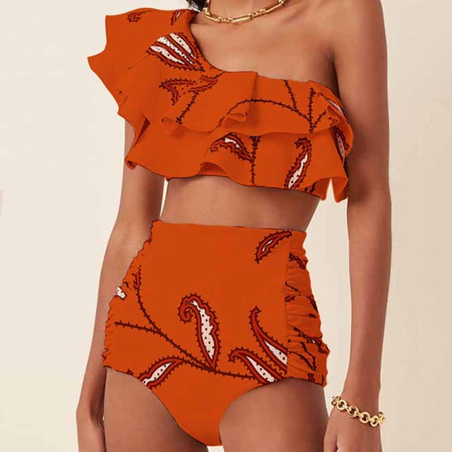 One-Shoulder Ruffled Bikini Set Tankini Three Piece Bikini Separate Bandeau Swimsuit Shorts Bourkini 2022 Luxury Orange