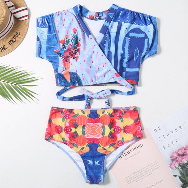 Print Ruffled Cut Out Bikini Sets Sexy Lace Up Swimsuit Two Pieces Swimwear Women 2021 Beach Bathing Suits Biqini