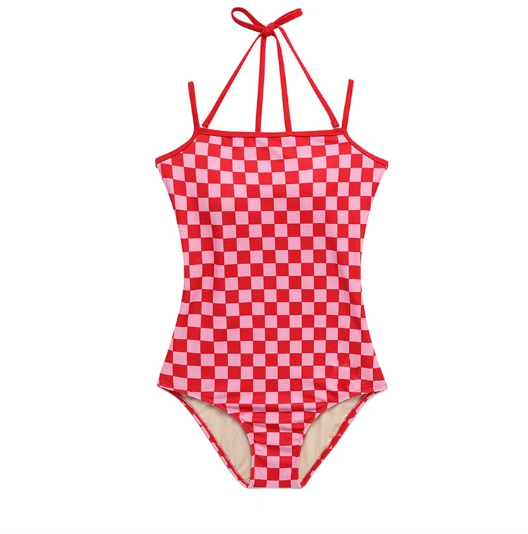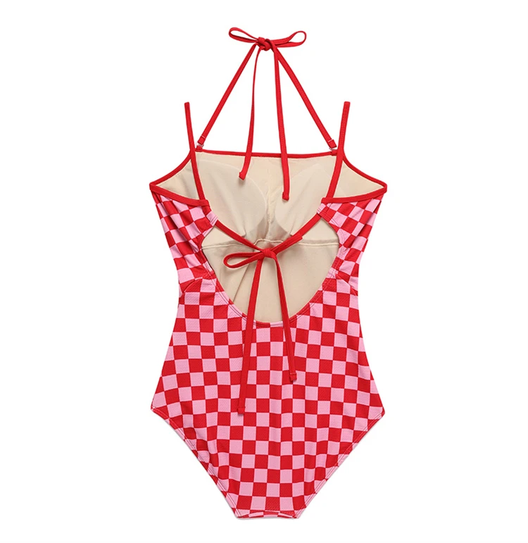 Sexy One Piece Plaid Swimsuit Women Strappy Bathing Suit Swimwear Monokini Bathing Suit Removable Pad Beach Wear