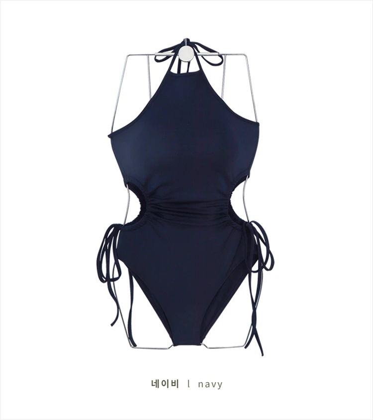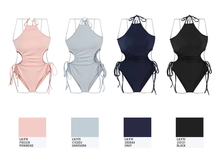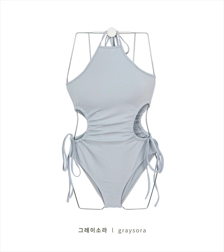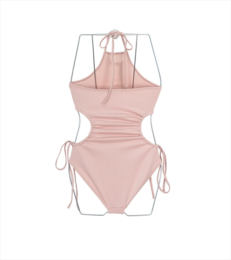 Sexy One Piece Swimsuit Women Solid Swimwear Cut Out Monokini Pleated Strappy Bathing Suit Removable Pad Beach Wear