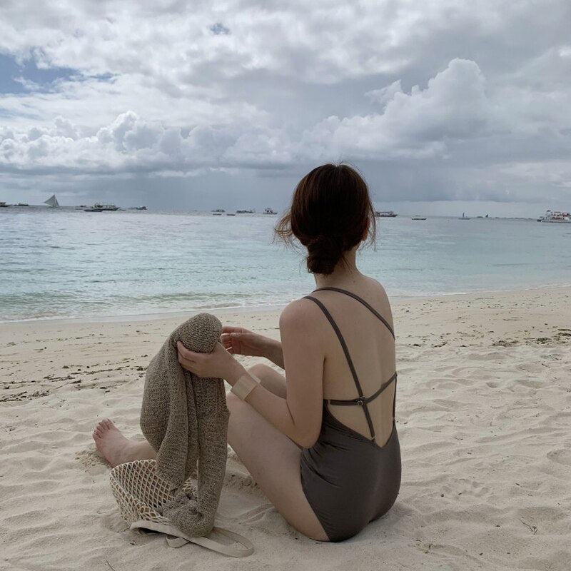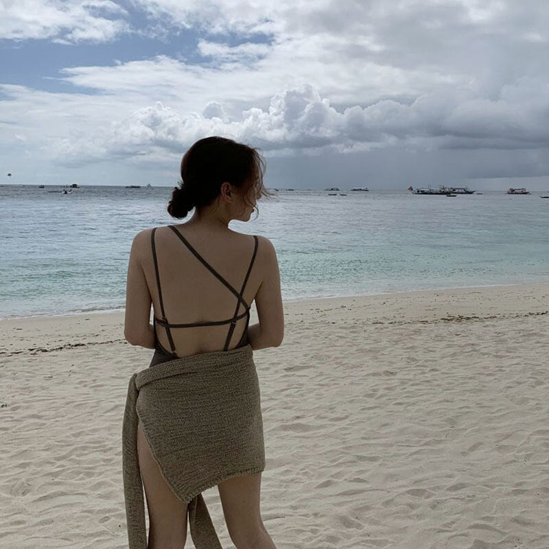 Single Shoulder One Piece Swimsuit Women Solid Swimwear Open Back Monokini Sexy Bathing Suit Removable Pad