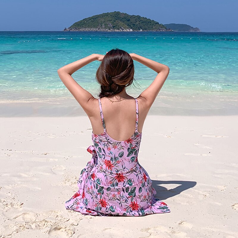 Skirt One Piece Swimsuit Women Floral Print Swimwear Ruffle Monokini Open Back Swim Suit Push Up Pad Bathing Suit Flounce Belt