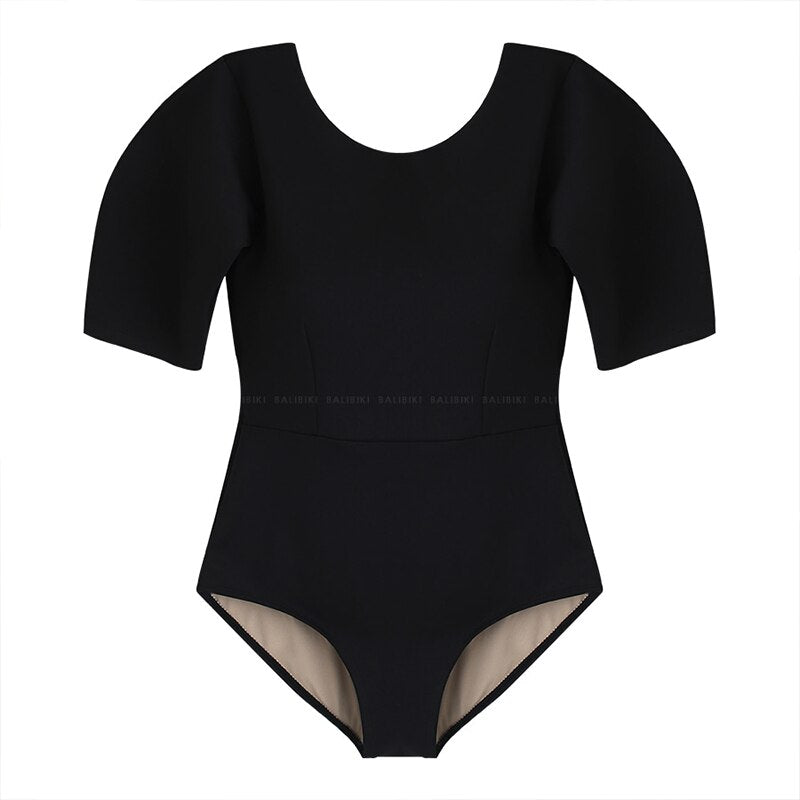Solid Sport Bodysuit Short Sleeve Monokini Backless Trikini Swimsuit Women's One-piece Swimwear Push Up Padded Beach Bathsuit