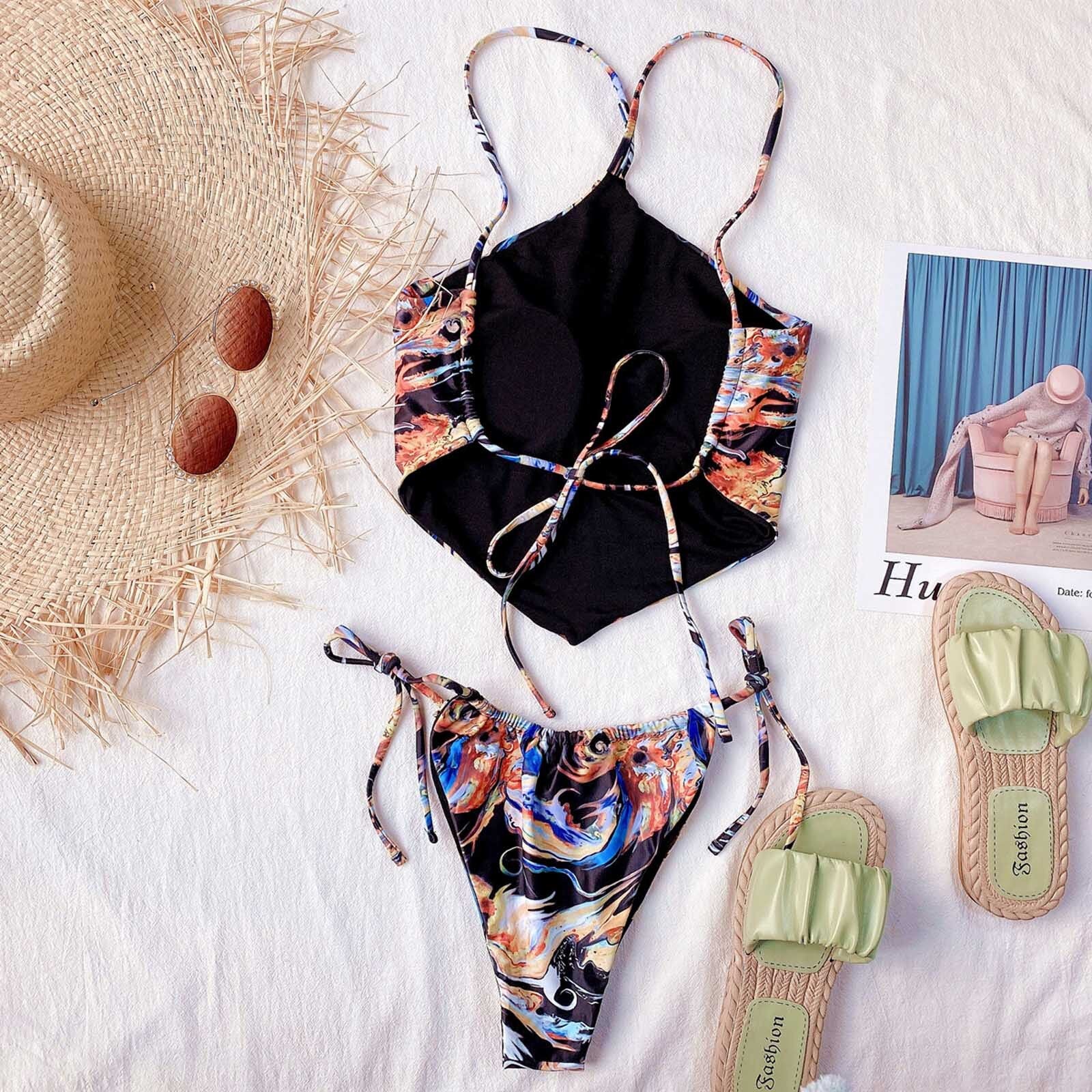 This bikini swimsuit for women with sexy coverage, retro bathing suit,