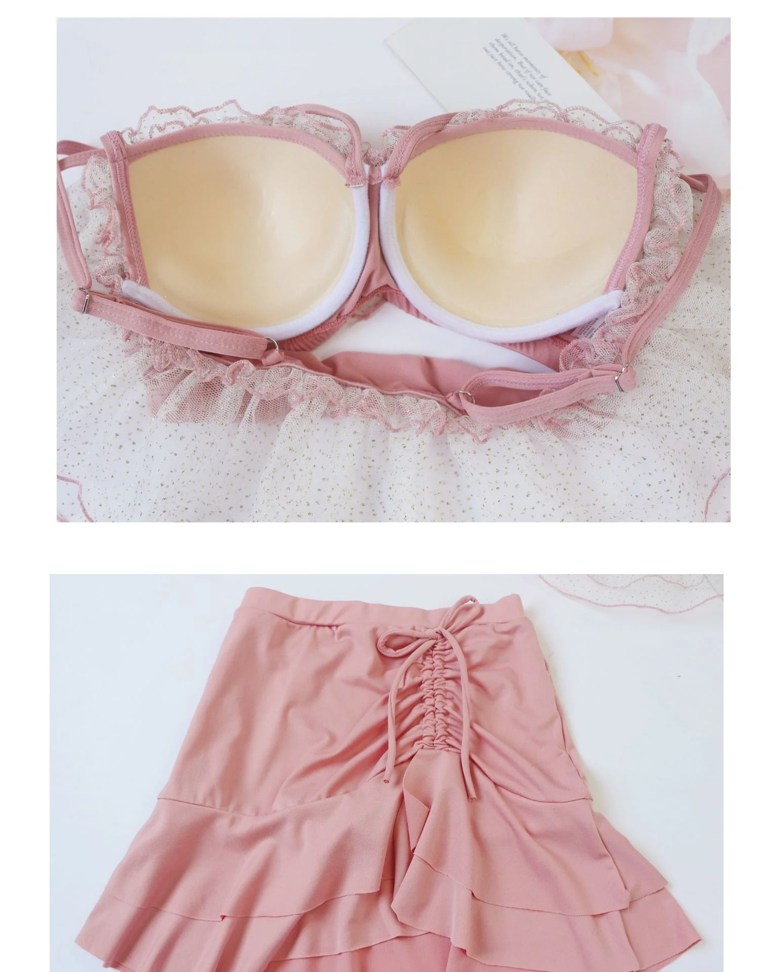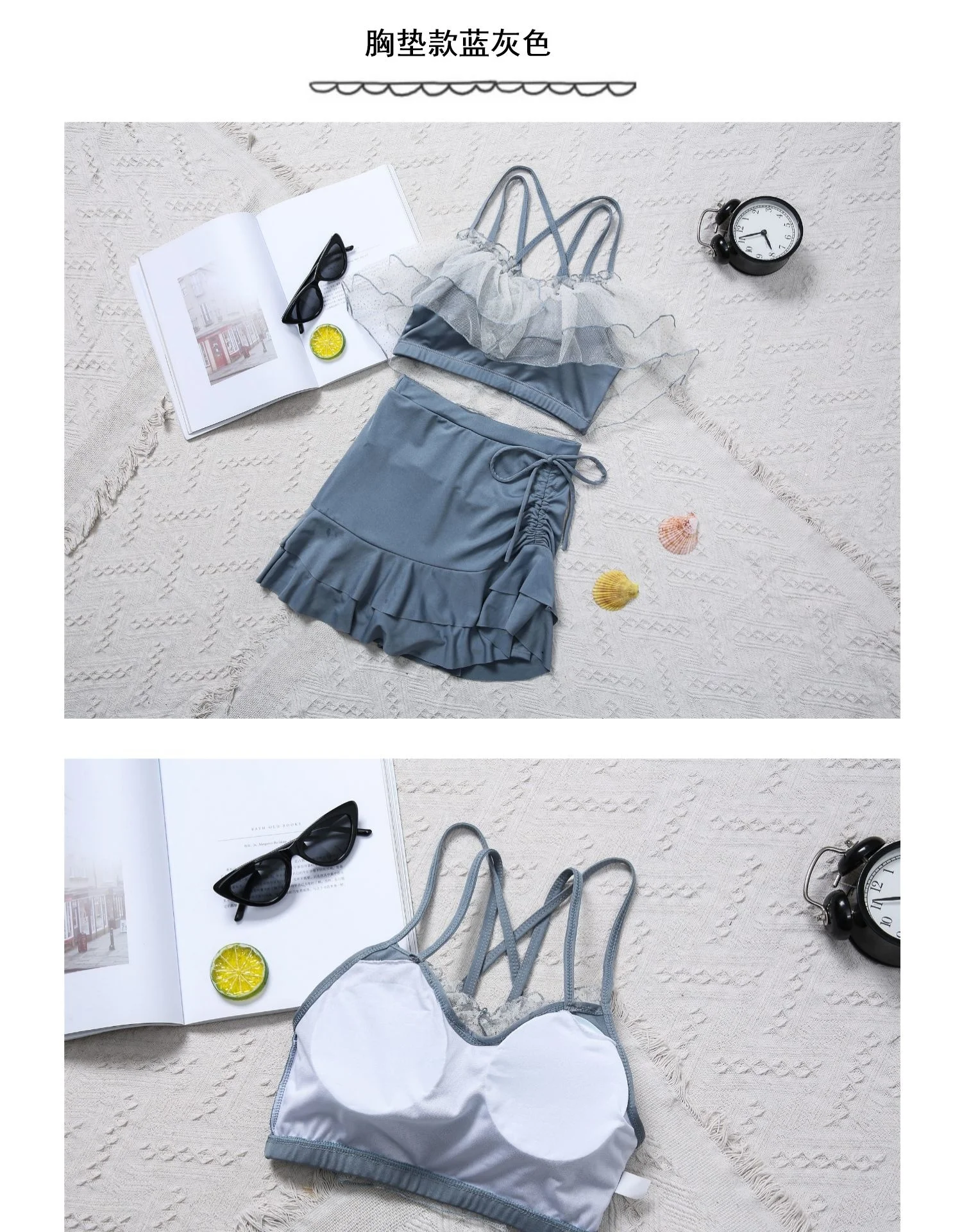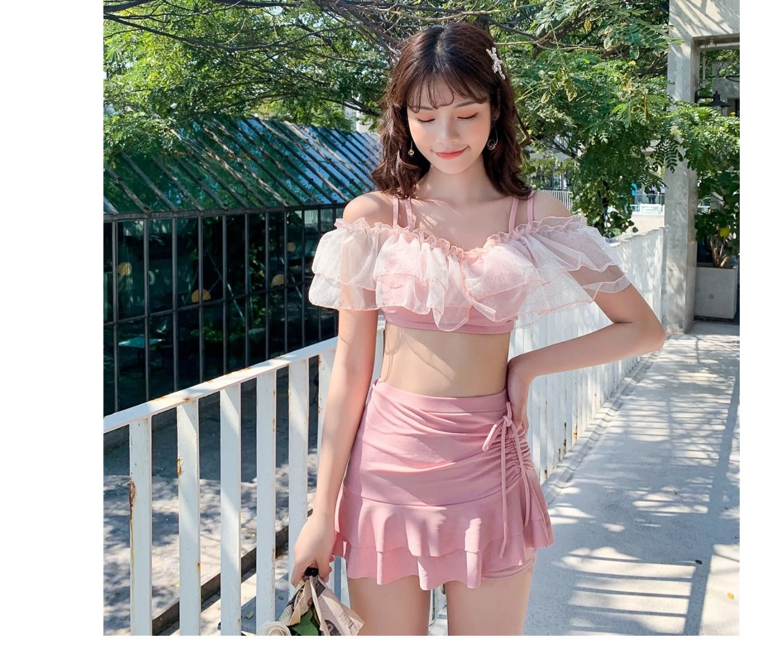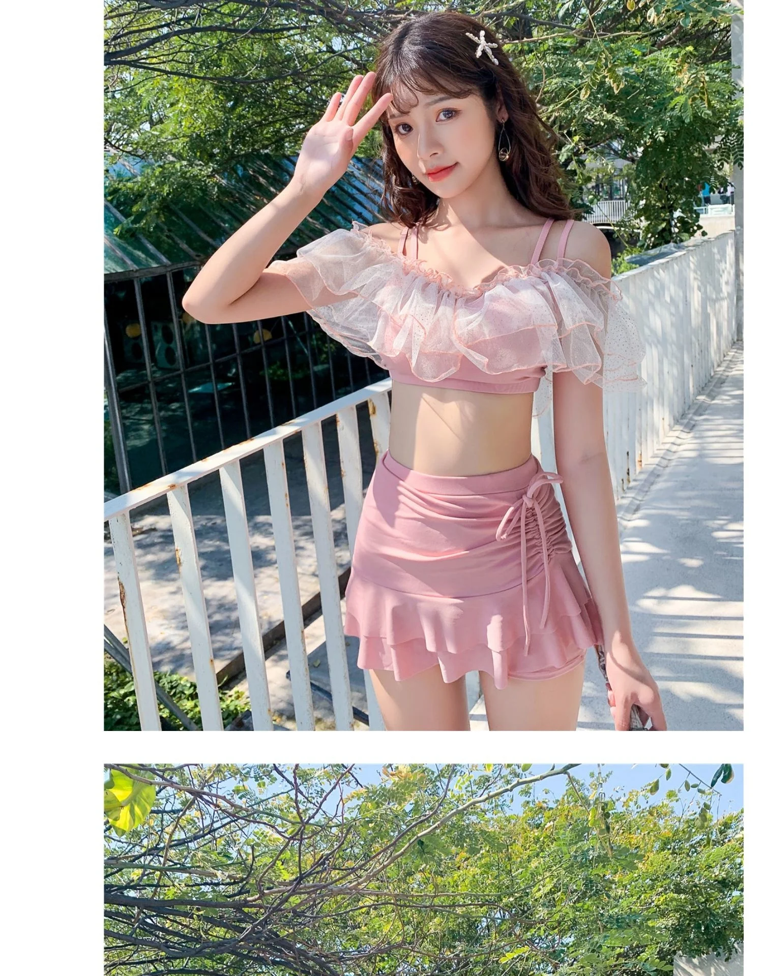 Two-Piece Swimsuit Korean Fairy Sweet Covering Belly Thin High Waist Gather Conservative Hot Bikini Swimwear Bathing Suit Women