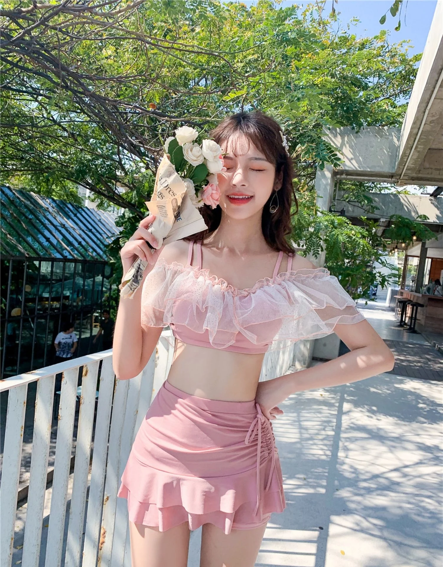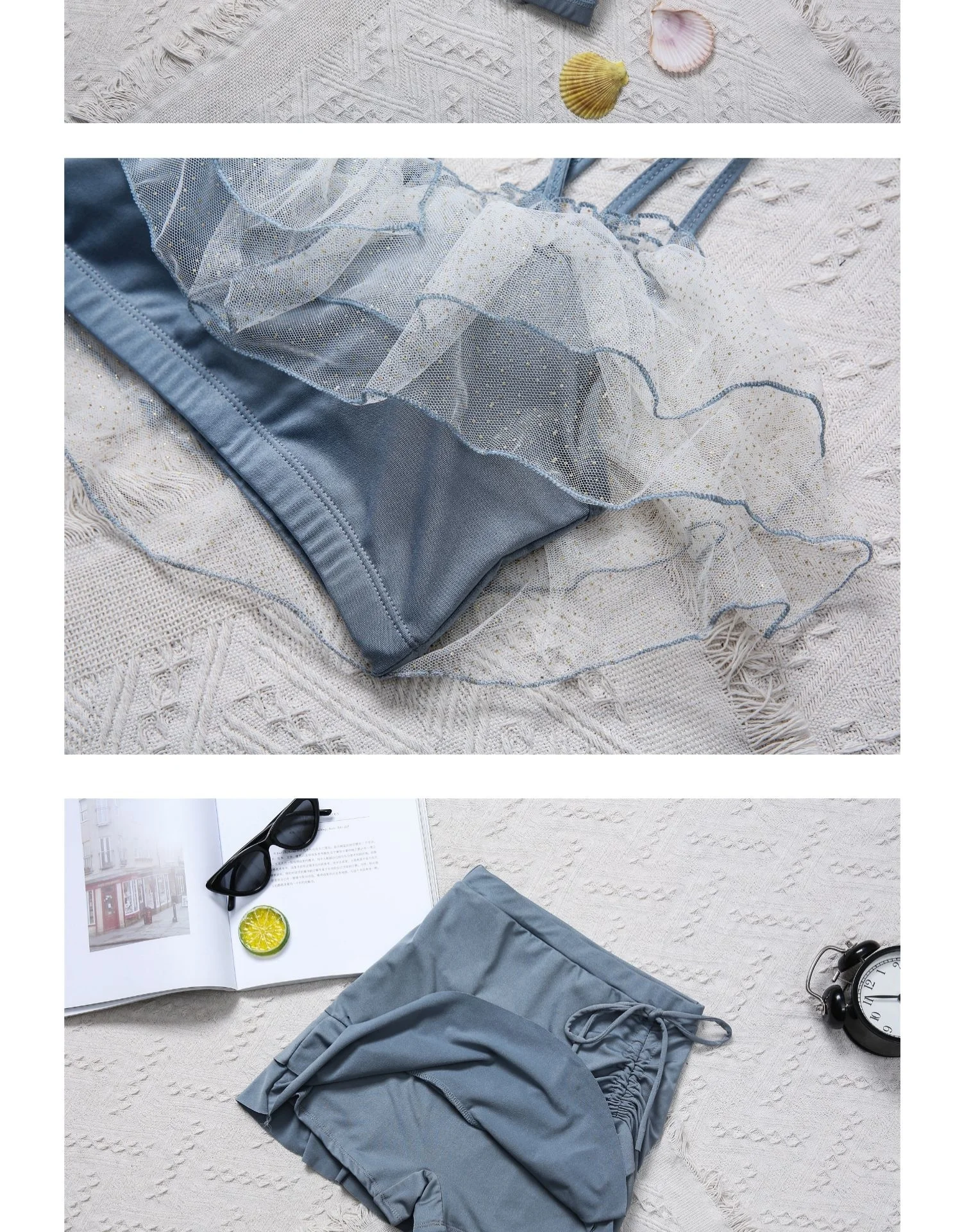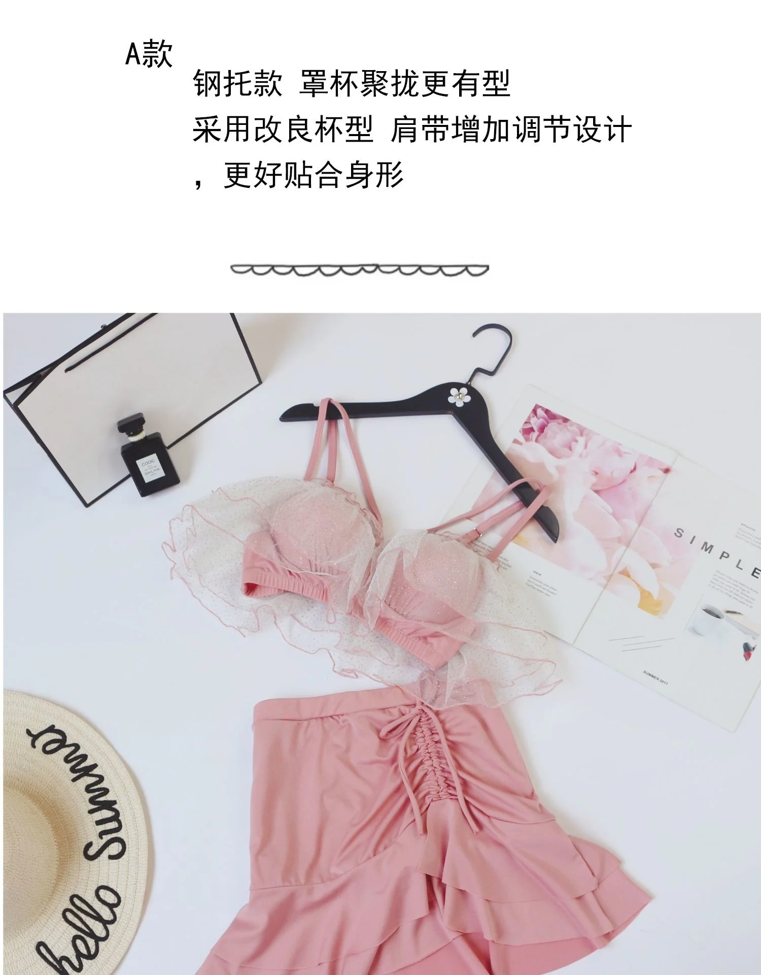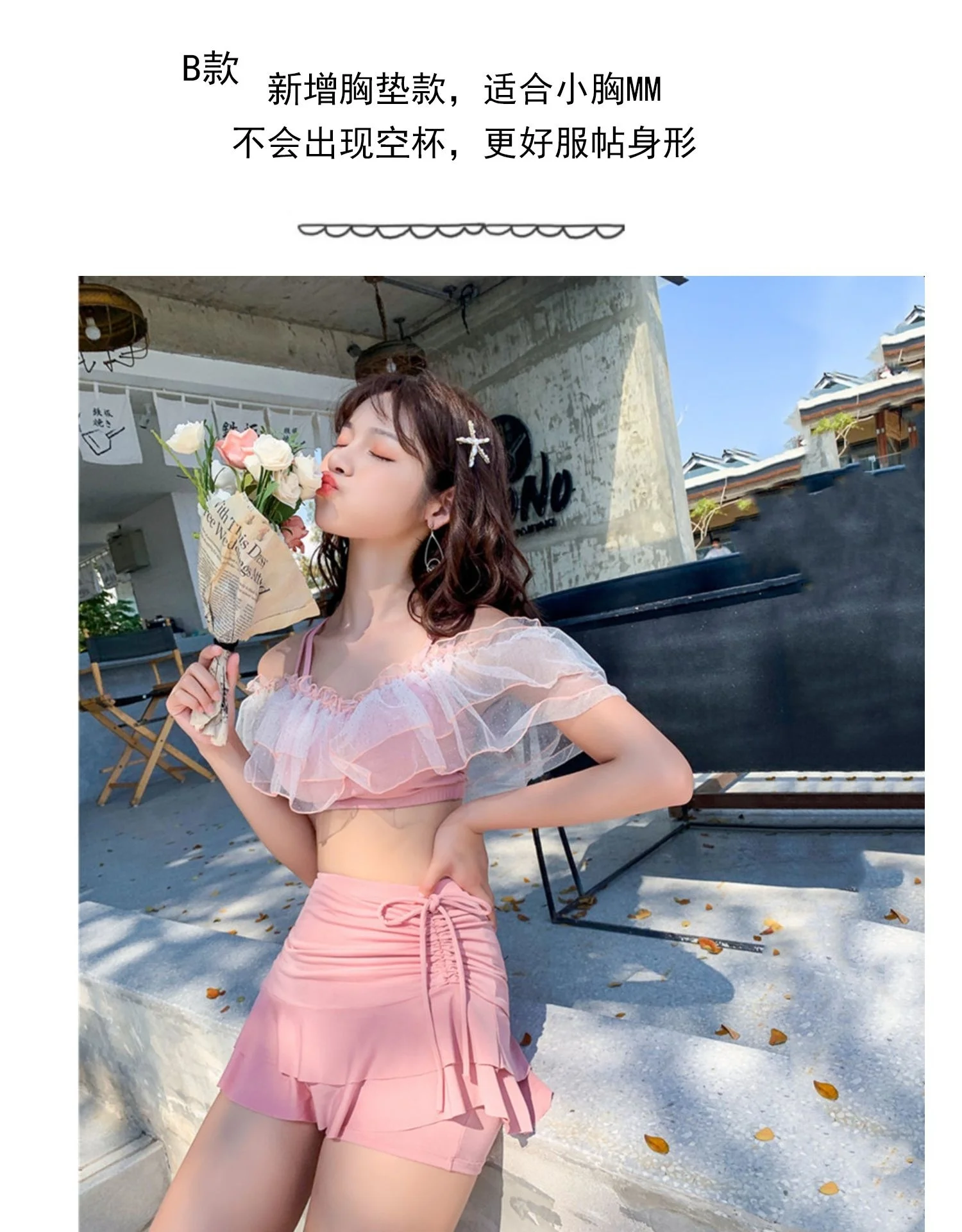 Two-Piece Swimsuit Korean Fairy Sweet Covering Belly Thin High Waist Gather Conservative Hot Bikini Swimwear Bathing Suit Women
