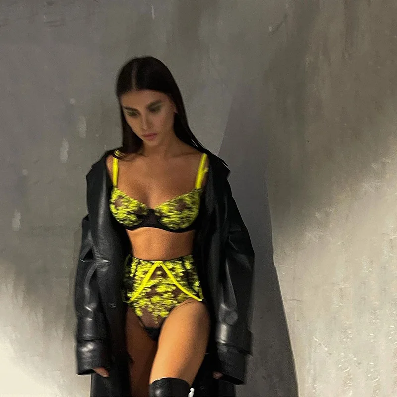 Garment Care: Hand washing or machine washing with lingerie bag, max 40 degrees Celsius, hang to dry, Iron with press cloth.