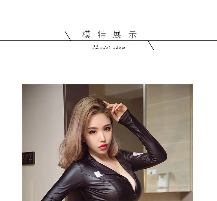 Women Hot Erotic Teddy Lingerie PU Leather Bodysuit Sexy Open Bust Zipper Catsuit Pole Dancing Costumes Swimsuit Lingerie Teddy