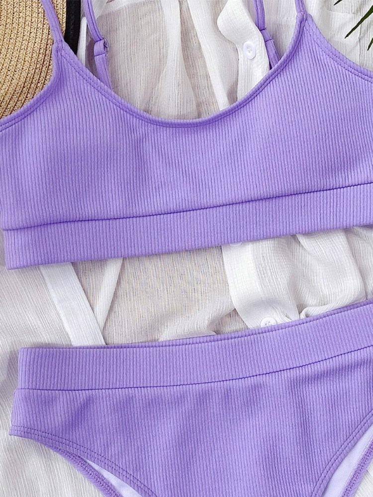 Women Swimsuit Bikini-Set High-Waist Swimwear Ribbed Strap Bathing-Suit 2021 Sexy Padded Monokini Push-Up Two-Piece Beach-Wear