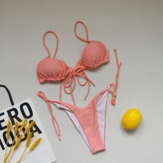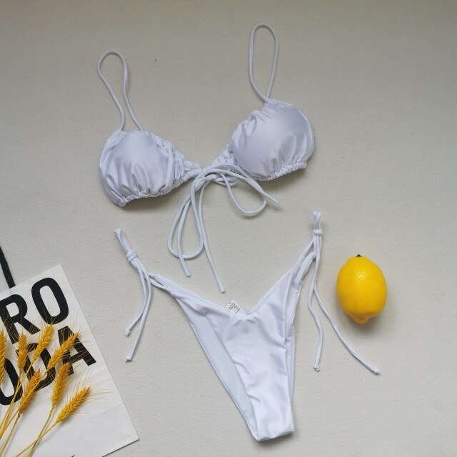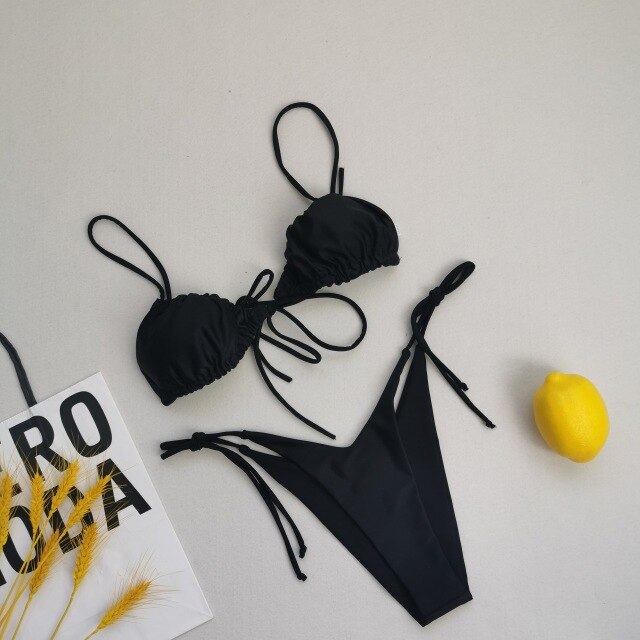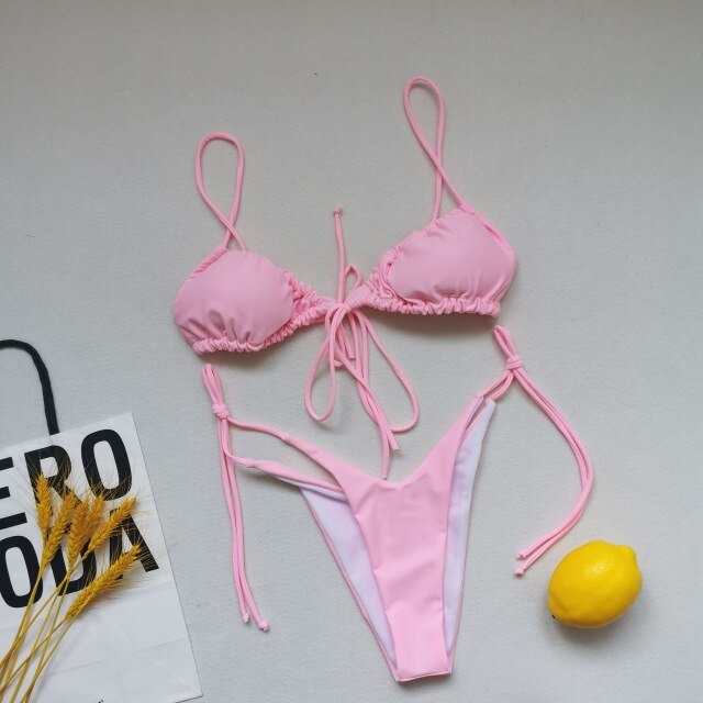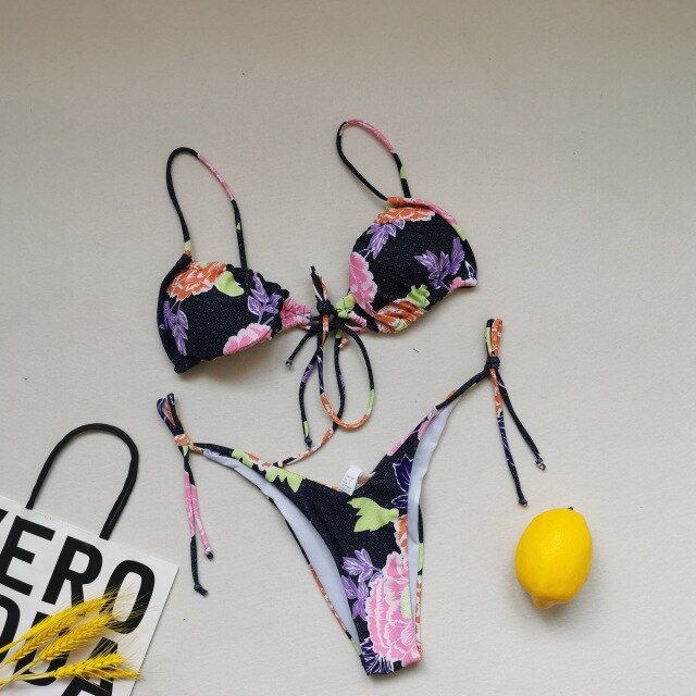 Style: women's swimwear 2021 Bikini set Pattern style: solid color, tight-fitting, open back, high elasticity, durable, small and fresh, printed, European and American Fabric: 82% nylon 18% polyester Lining: 82% polyester fiber 18% spandex Applicable scene: summer beach sun bath Bra: no chest pad with underwire Size: S, M, L, XL